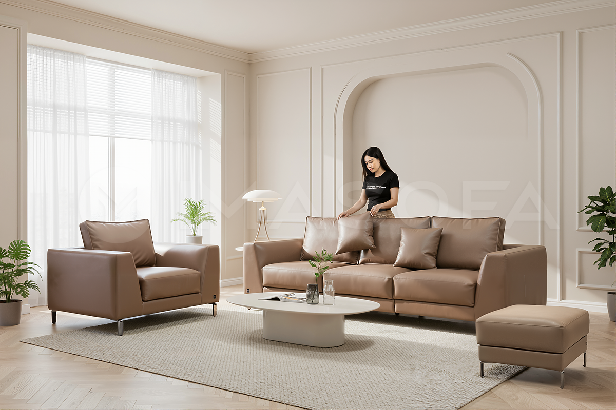 | Chất liệu khung | Khung xương gỗ tần bì, ván công nghiệp, hệ đàn hồi bằng thép lò xo, mút latex nhập khẩu, bông nguyên sinh Hàn quốc. |