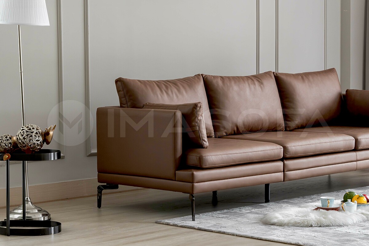 Sofa băng Bella da bò nhân tạo màu nâu
