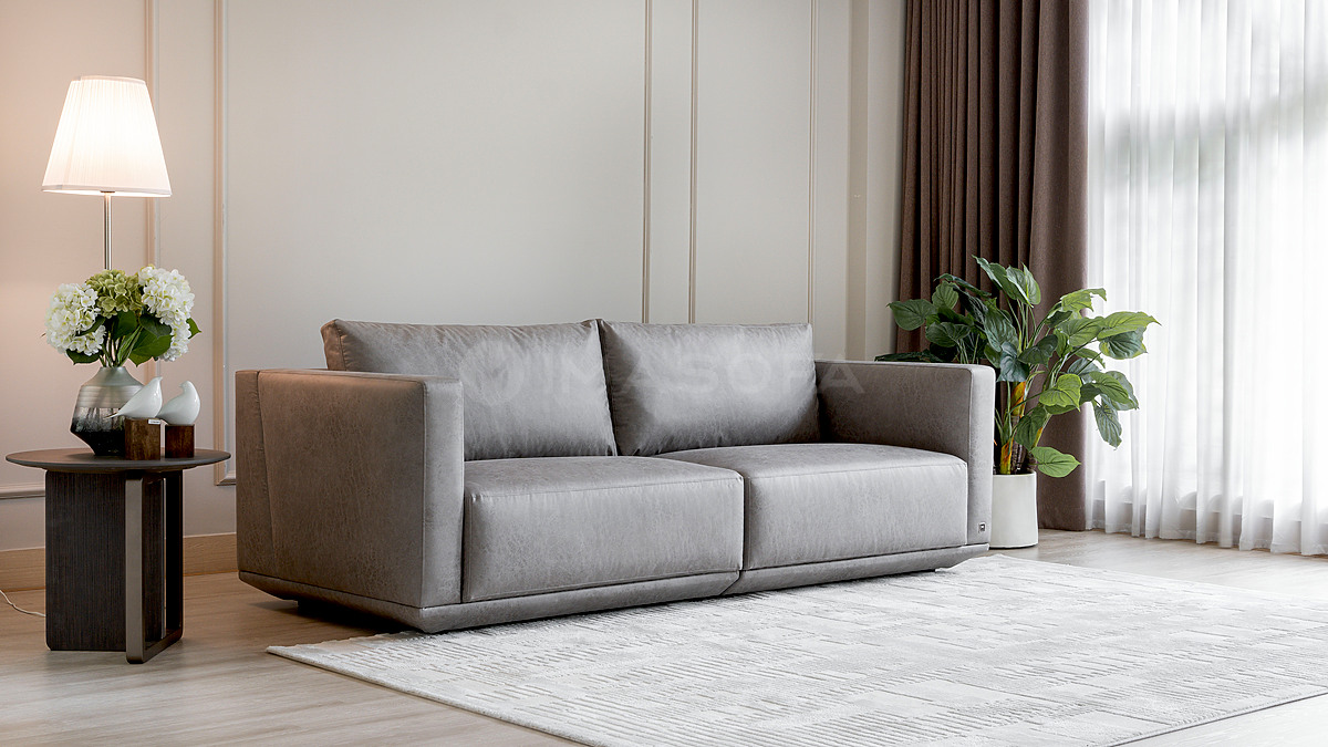 Sofa băng Casa da bò nhân tạo màu xám nhạt
