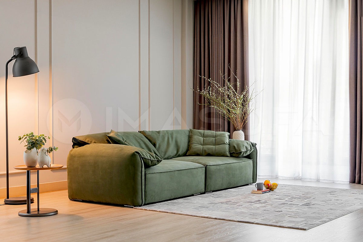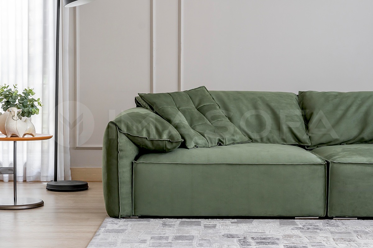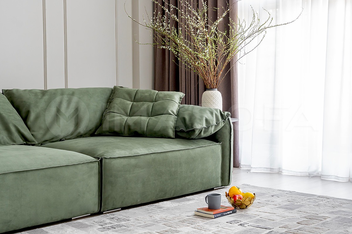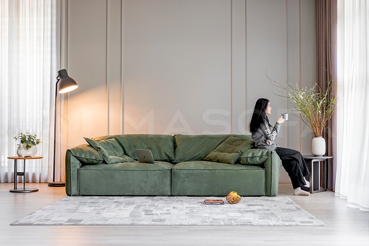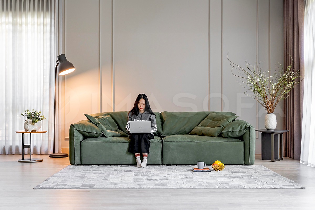 Sofa băng Casablanca vải da lộn màu xanh lá