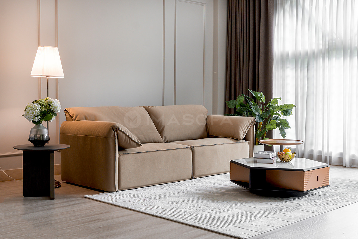 Sofa băng Casablanca vải màu da bò
