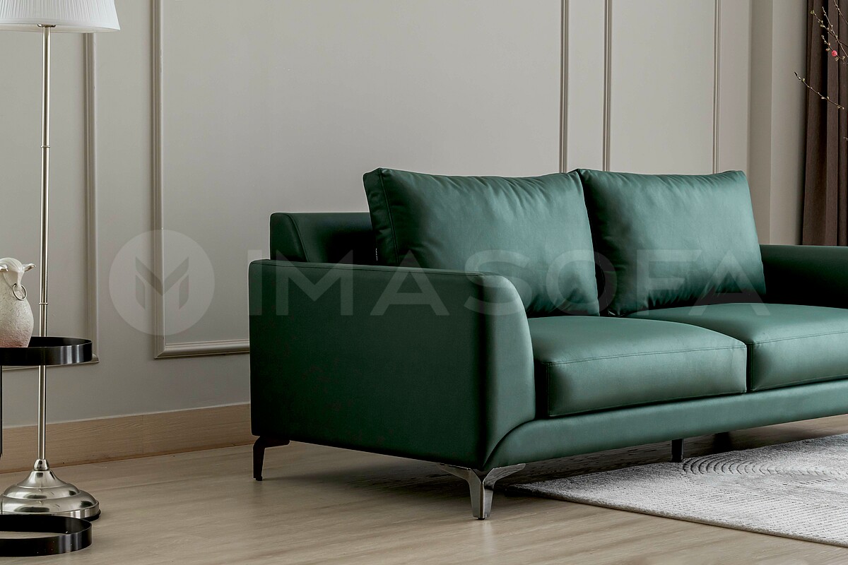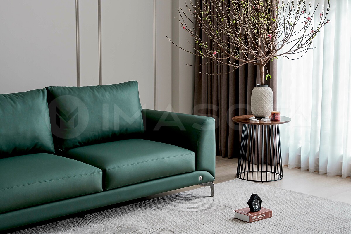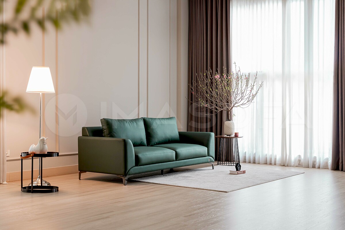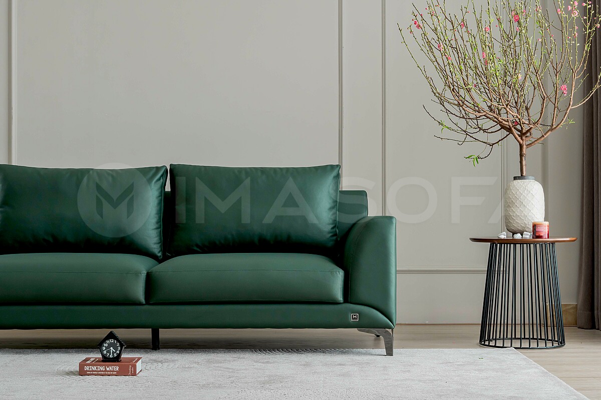 Sofa băng Famigo da bò nhân tạo màu xanh lá