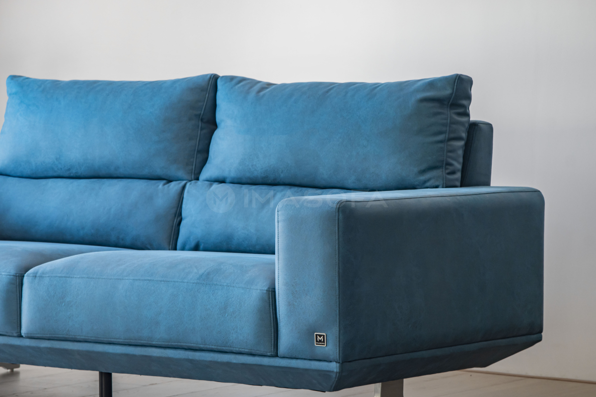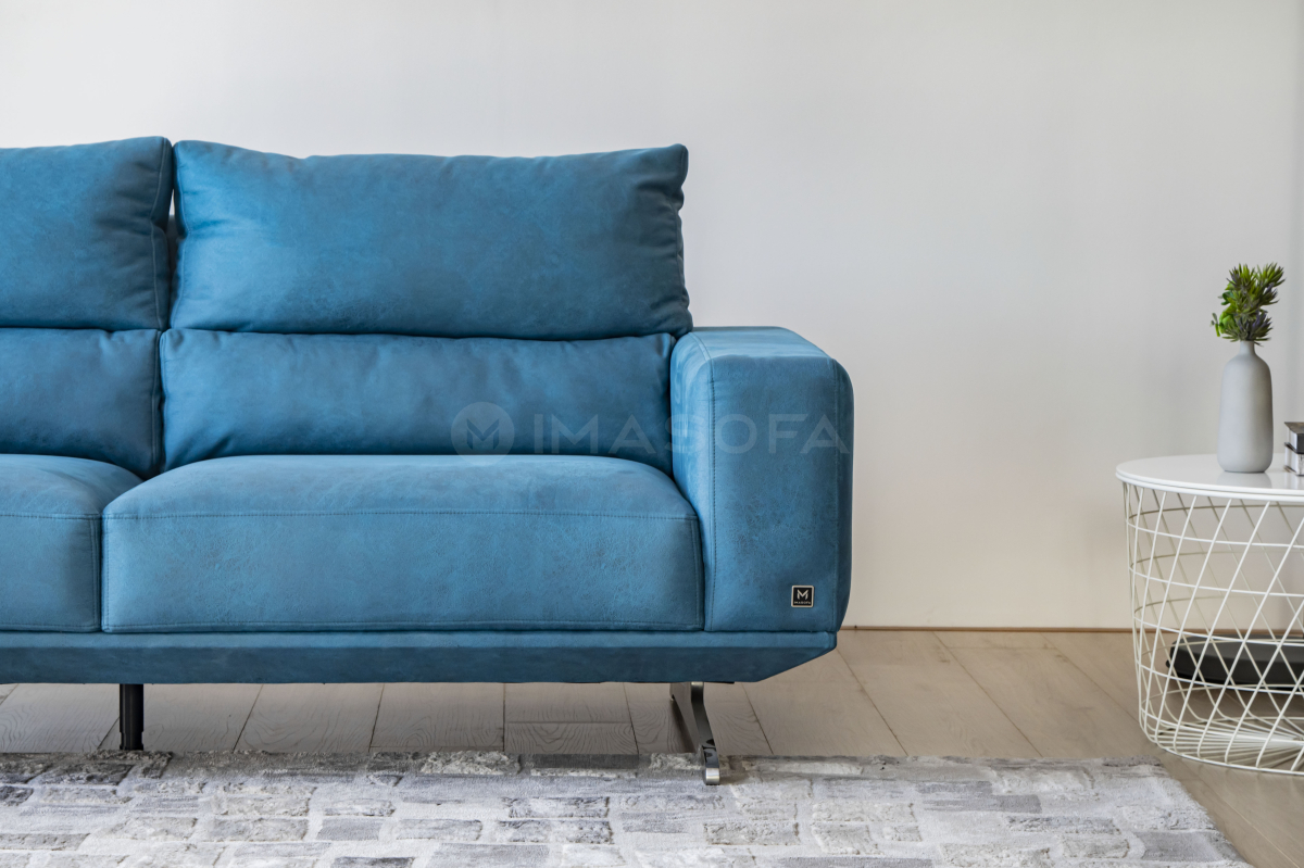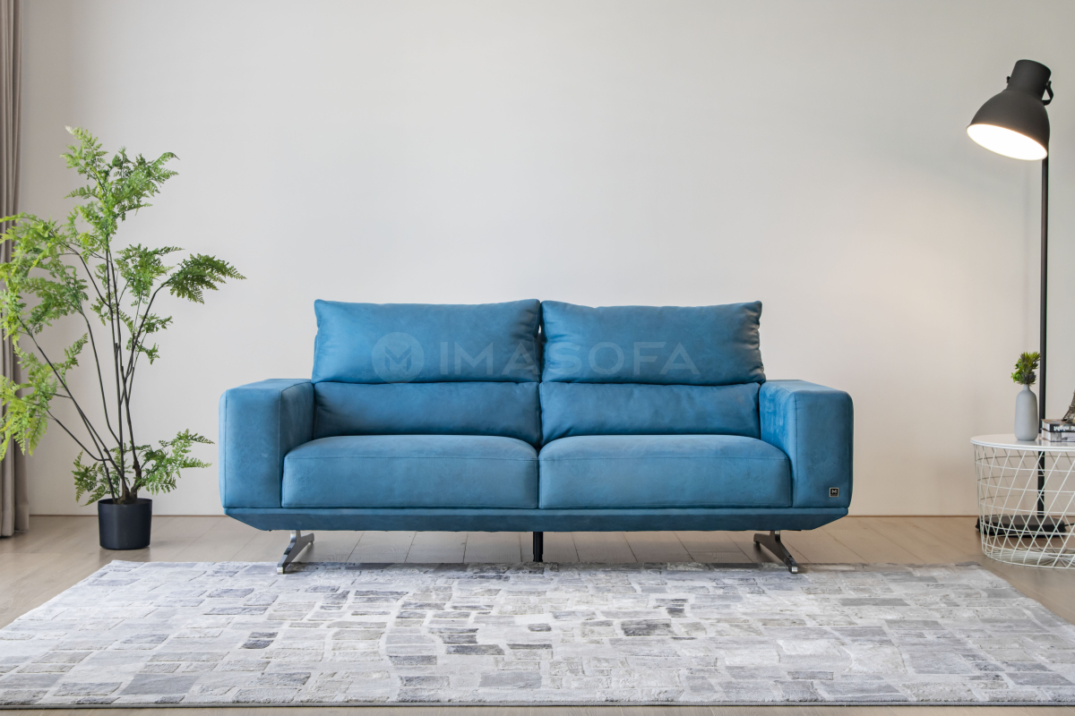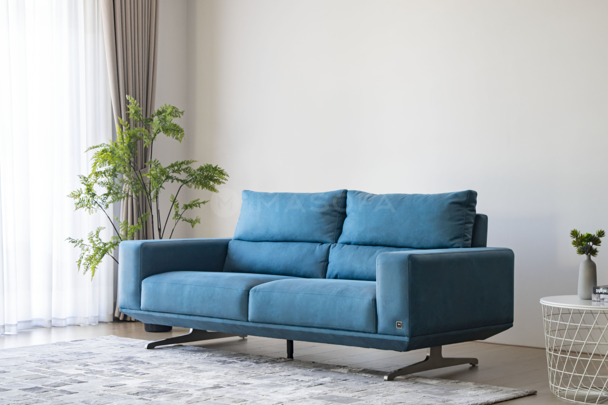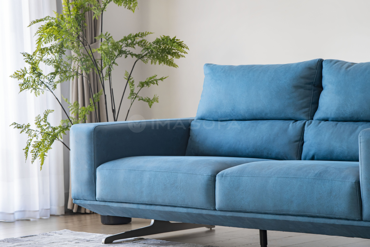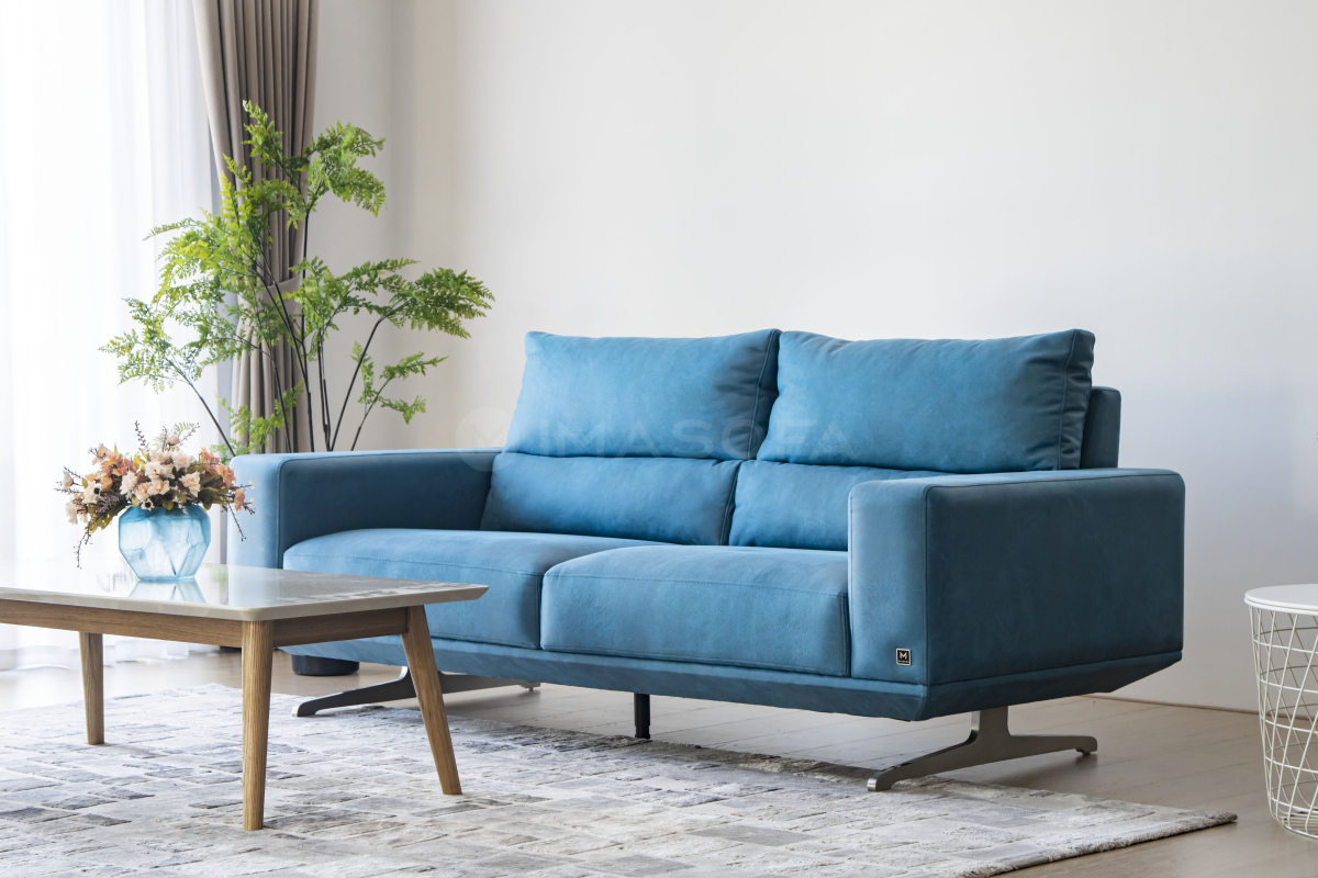 Sofa băng Floren da bò nhân tạo màu xanh dương