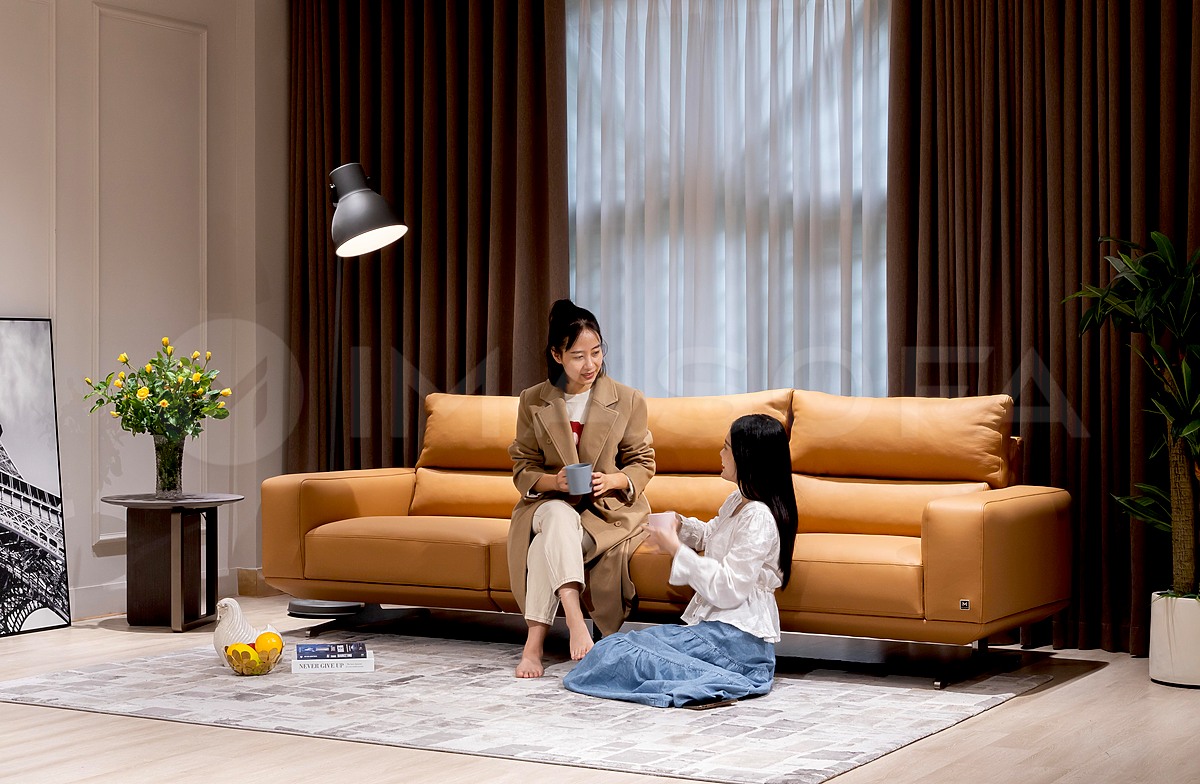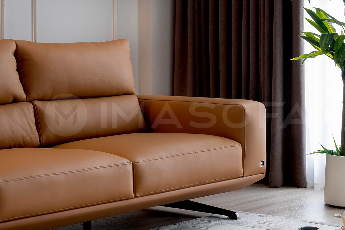 Sofa băng Floren da bò tự nhiên màu da bò