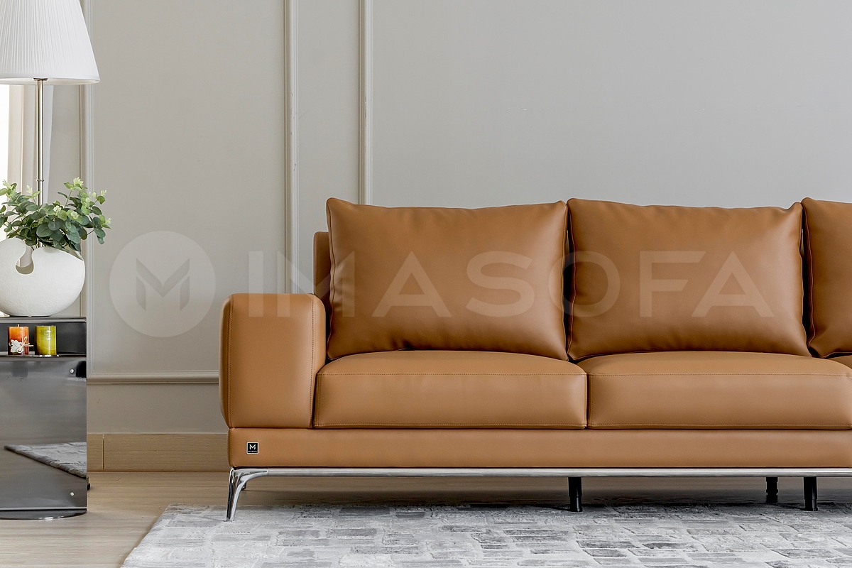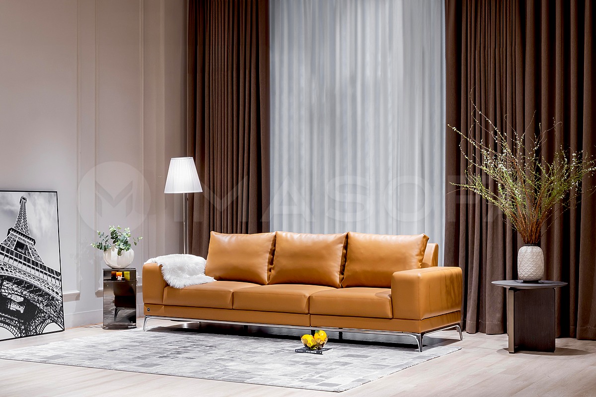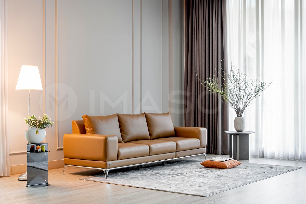 Sofa băng Jamil da bò nhân tạo màu da bò
