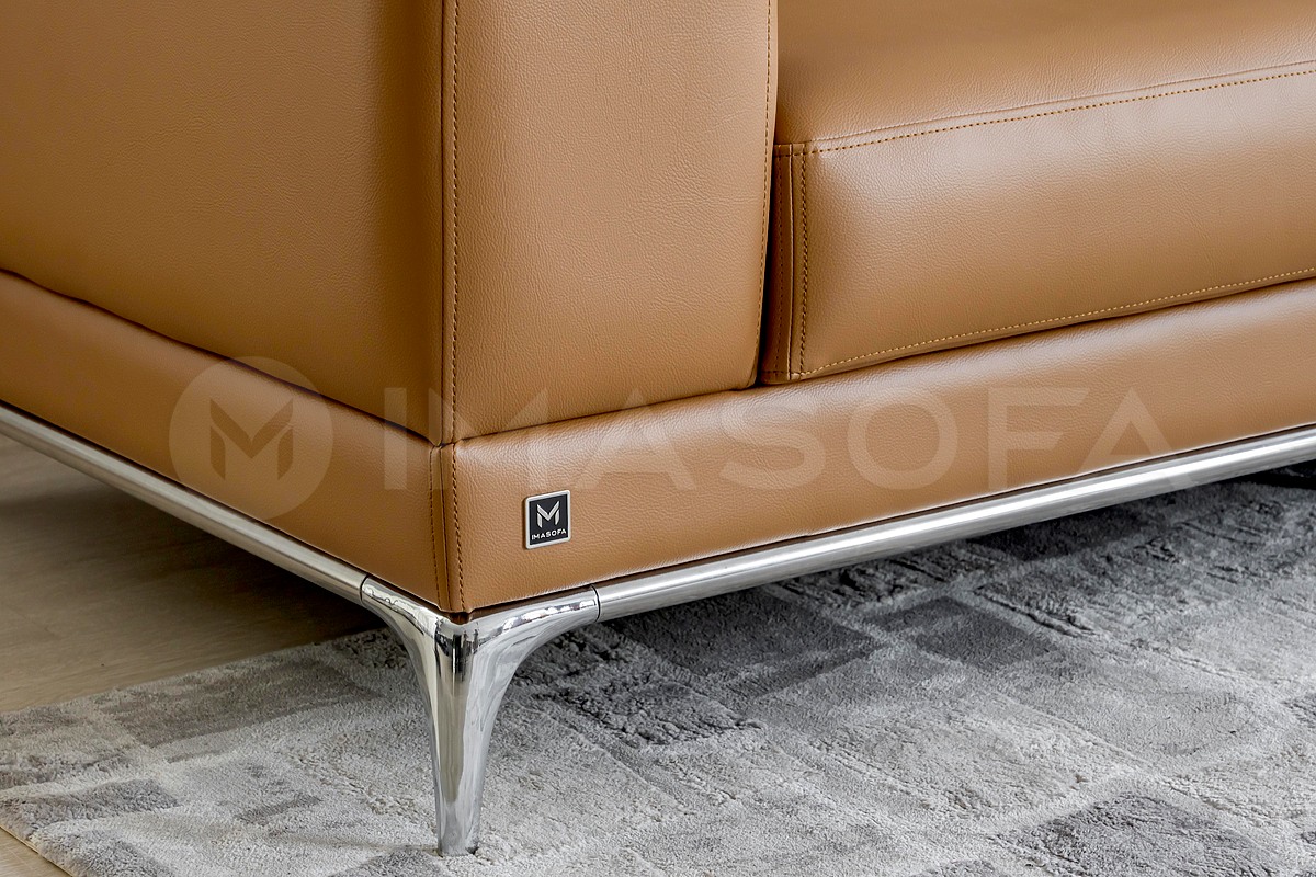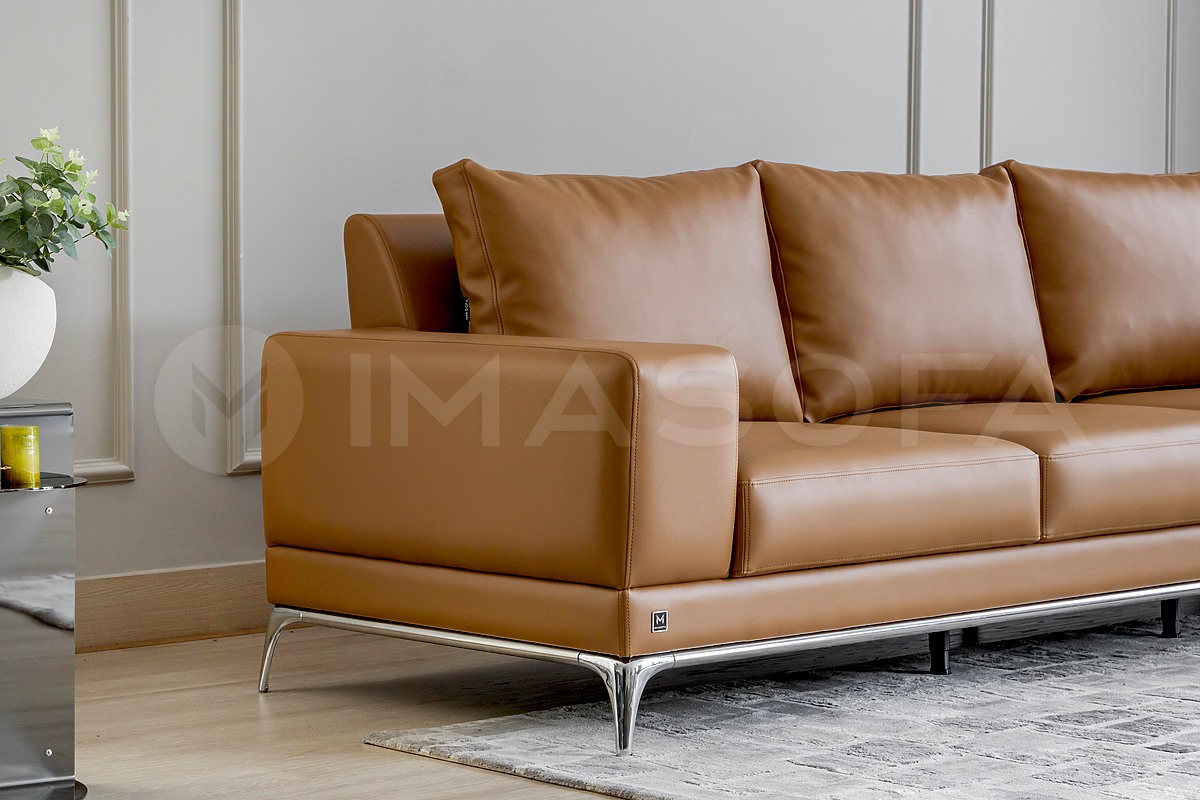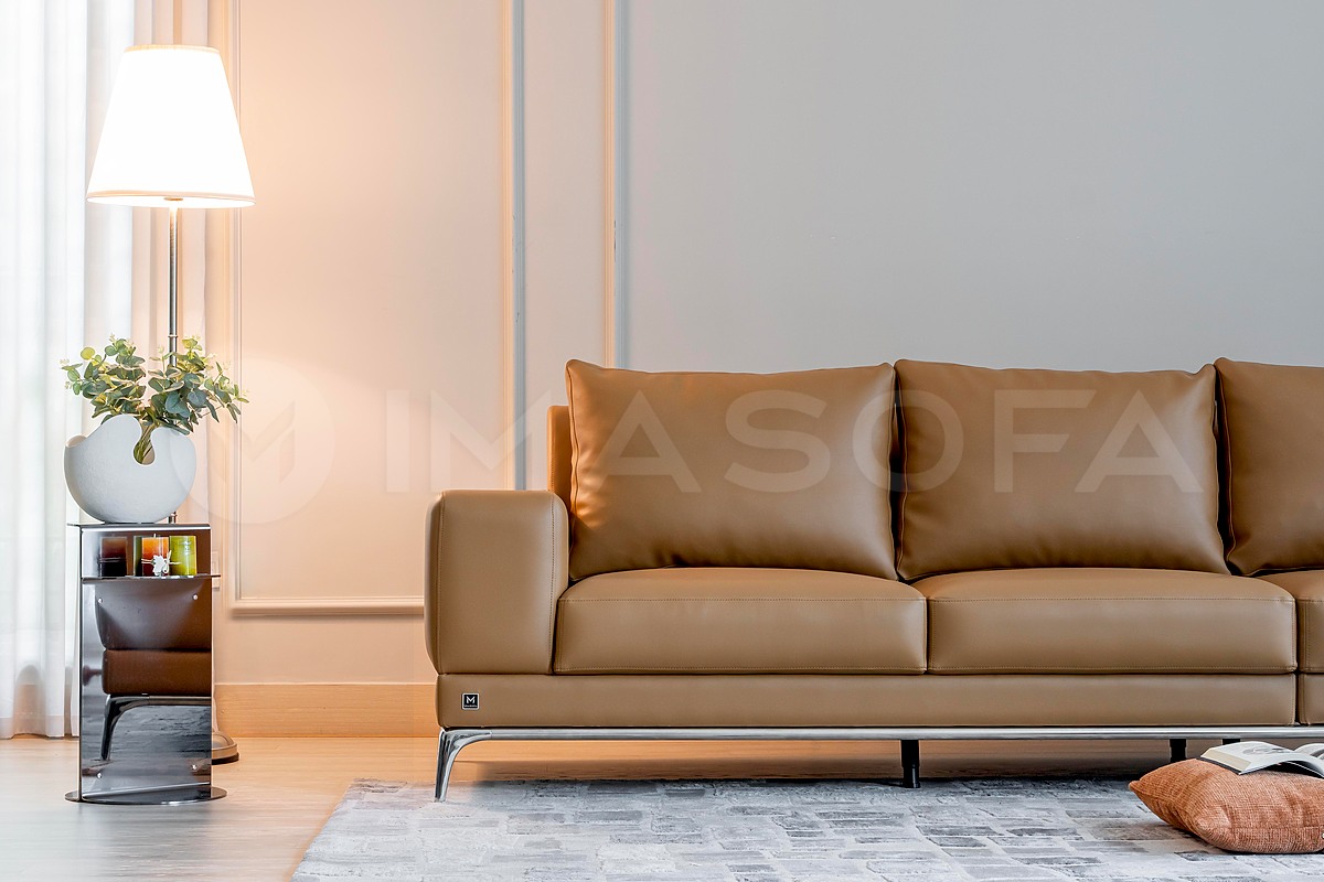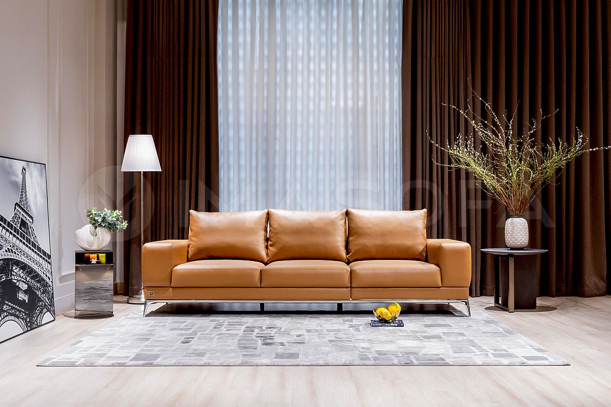 Sofa băng Jamil da bò nhân tạo màu da bò