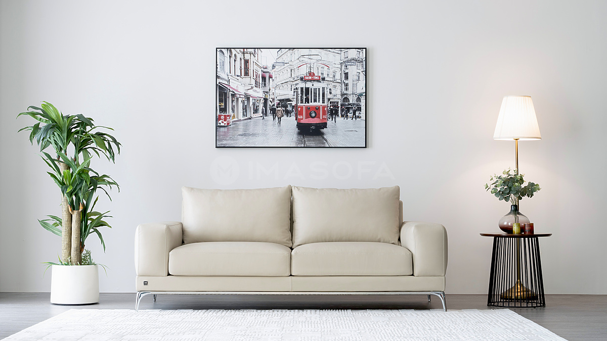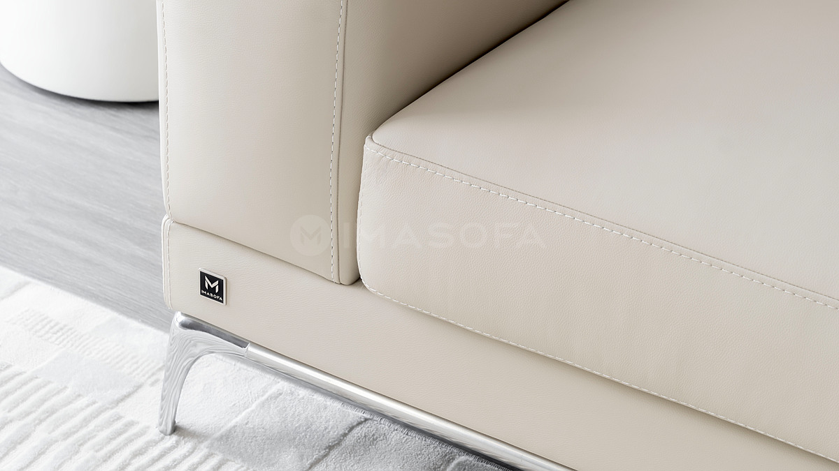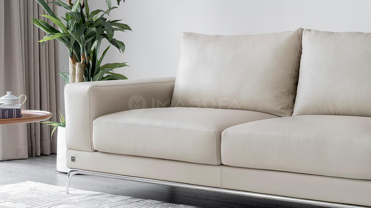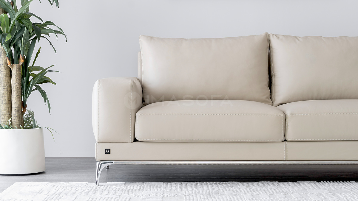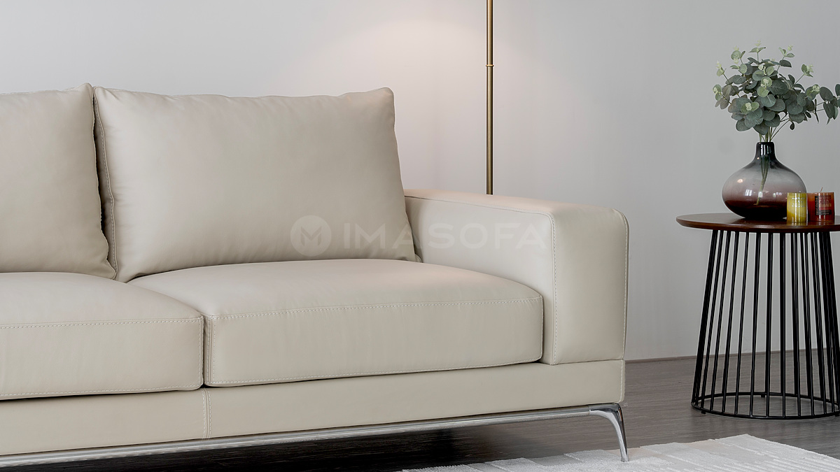 Sofa băng Jamil da bò tự nhiên màu kem sáng