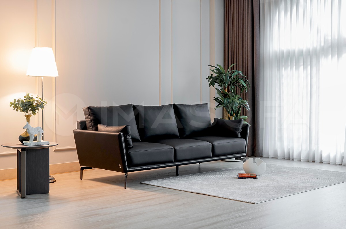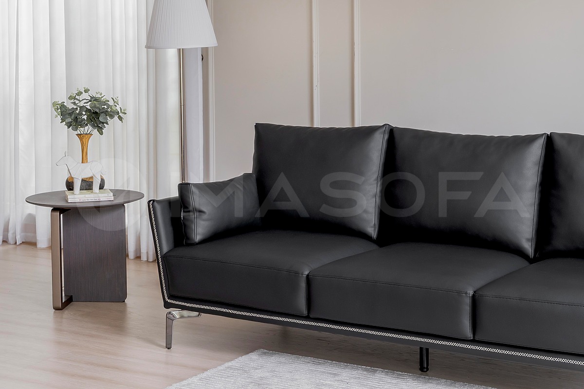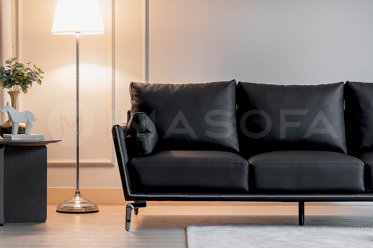 Sofa băng Napoli da bò nhân tạo màu đen