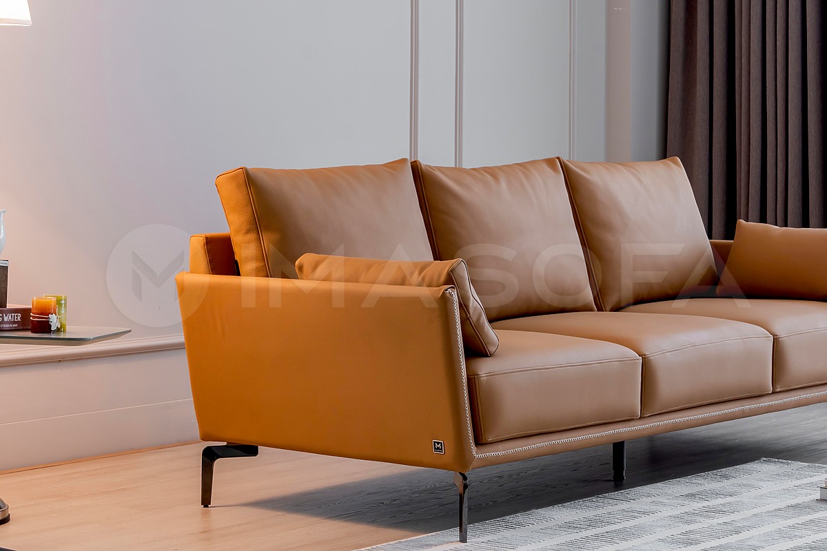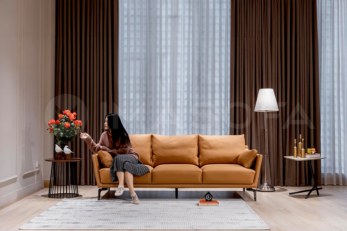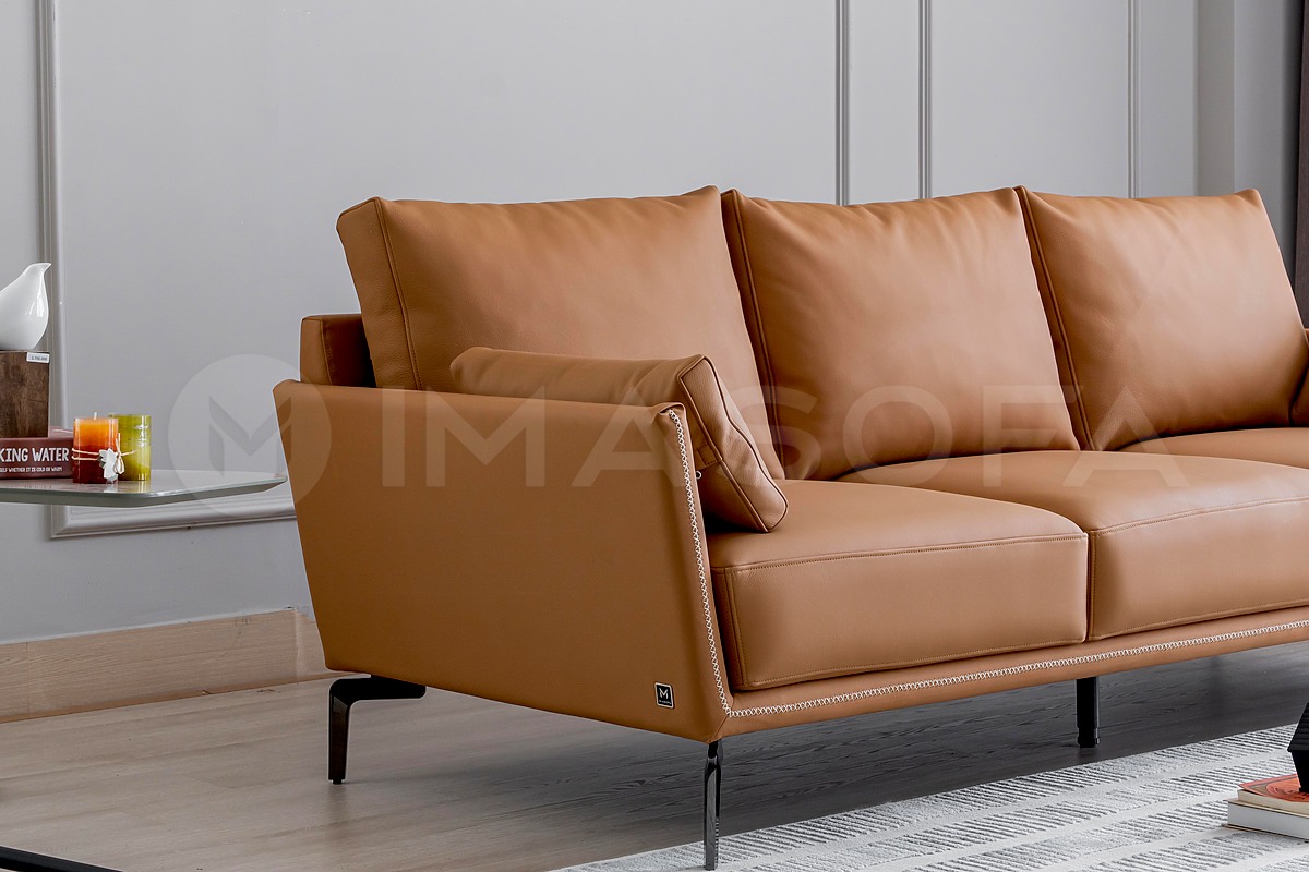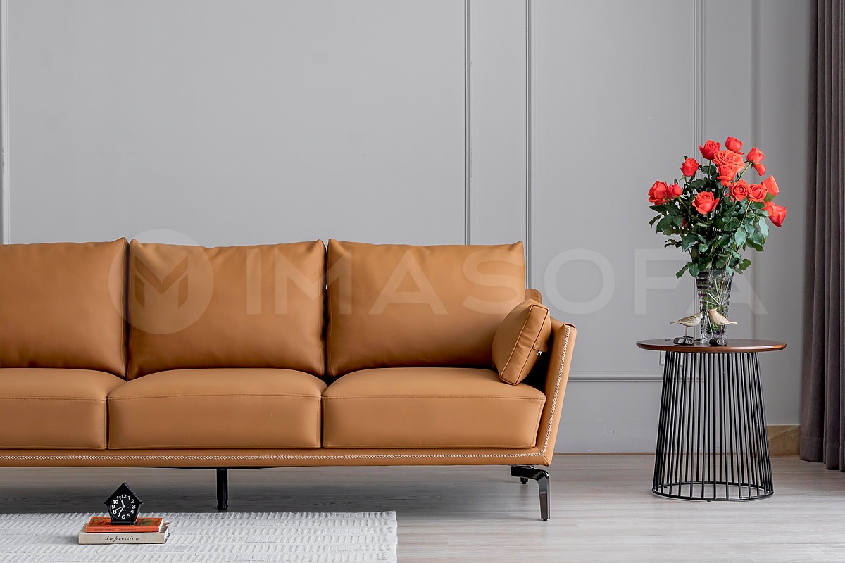 Sofa băng Napoli da bò tự nhiên màu da bò