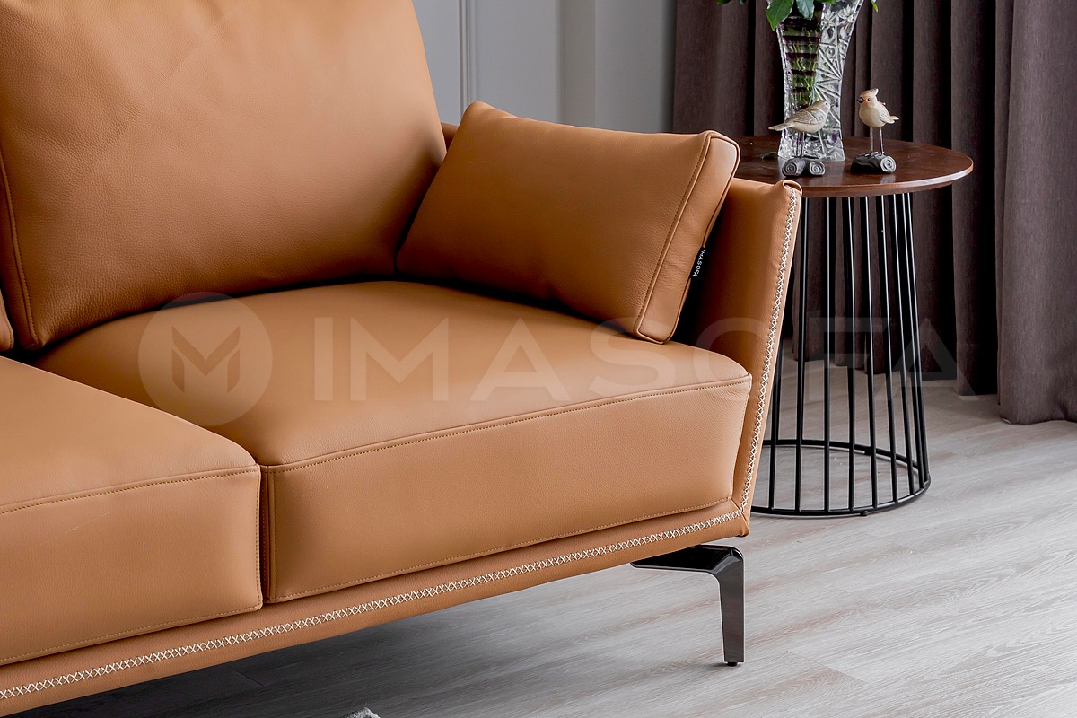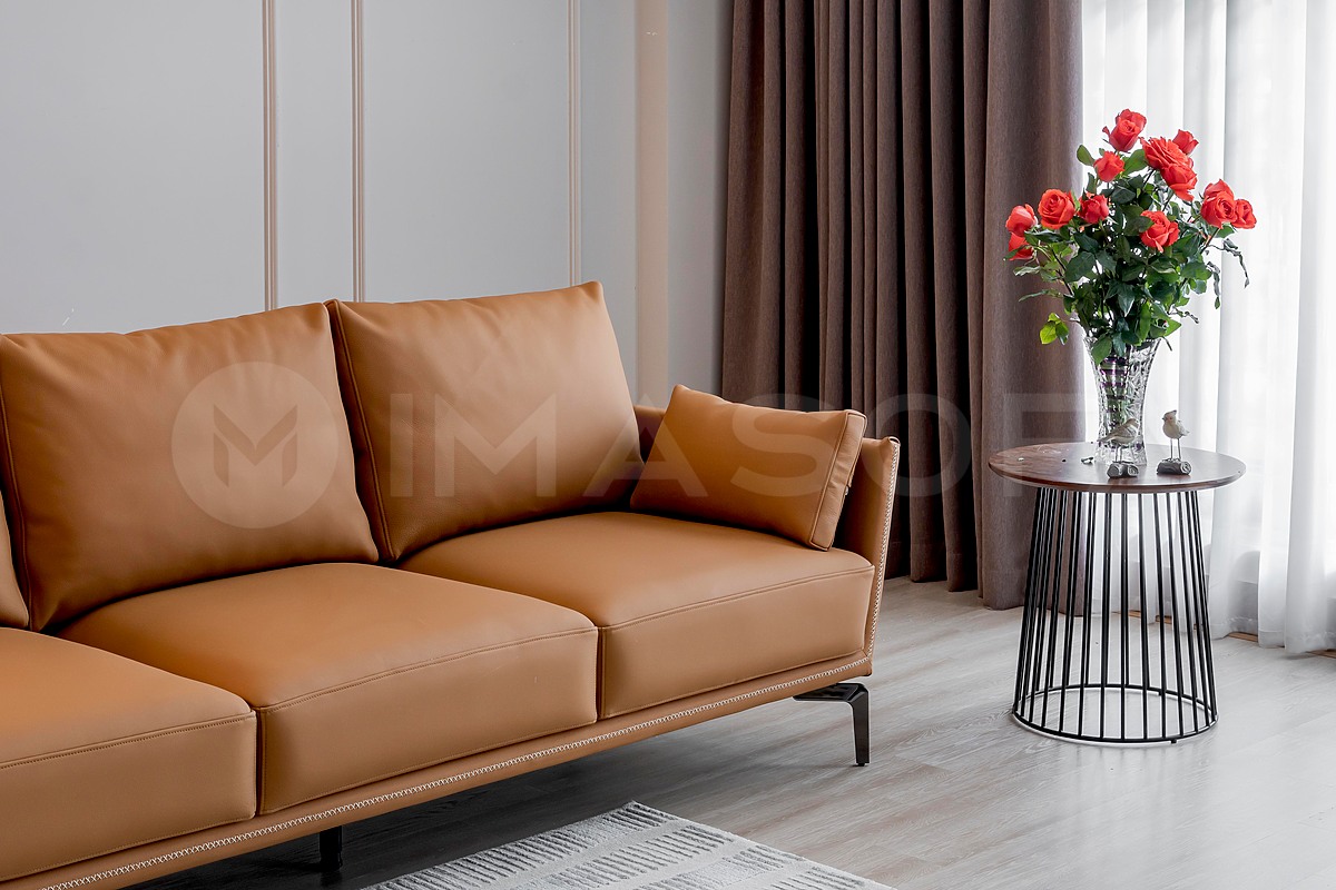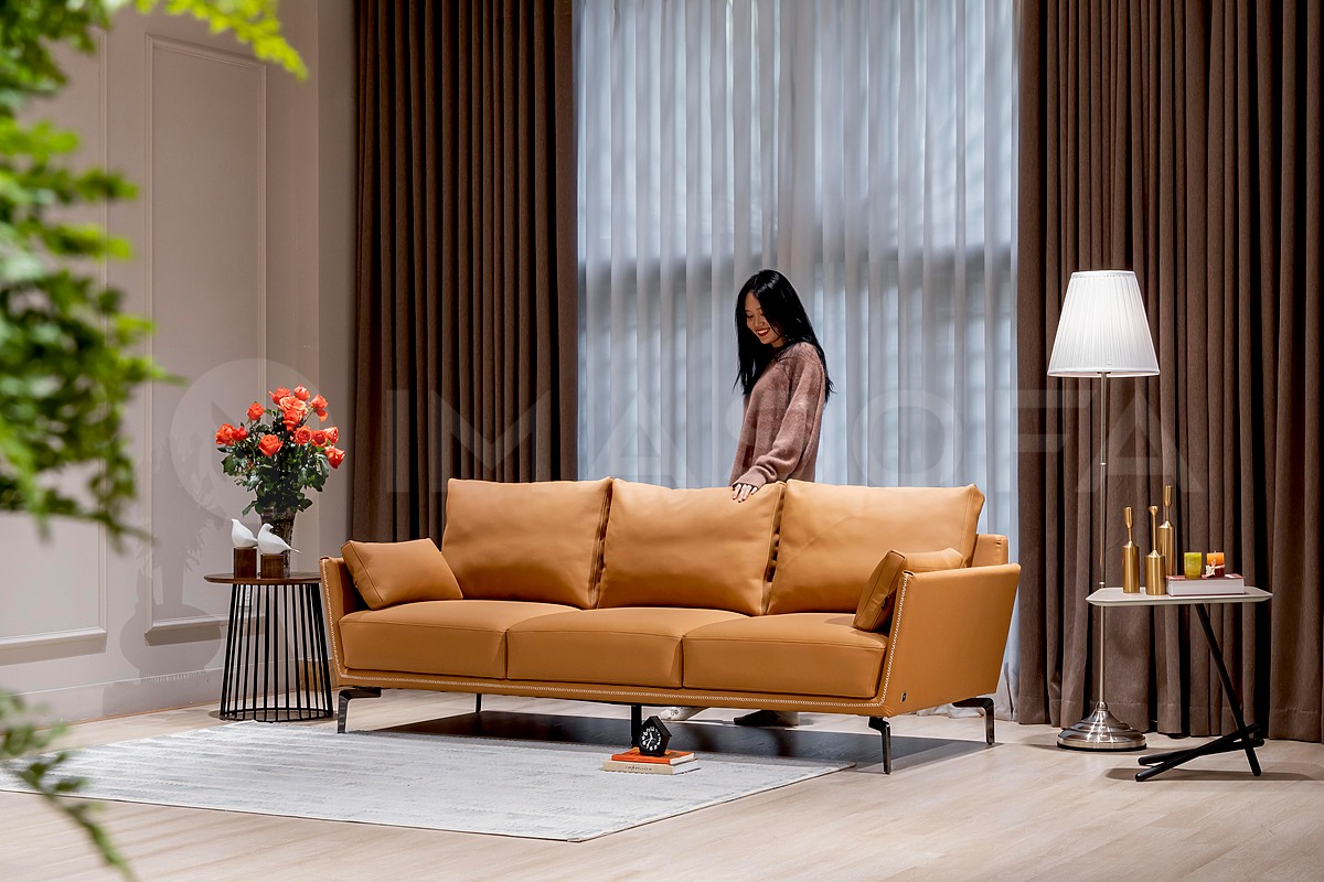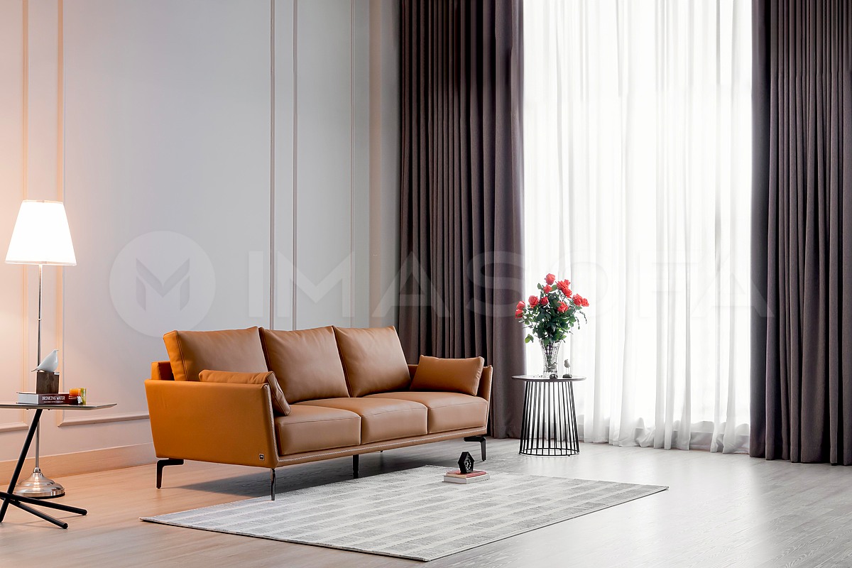 Sofa băng Napoli da bò tự nhiên màu da bò