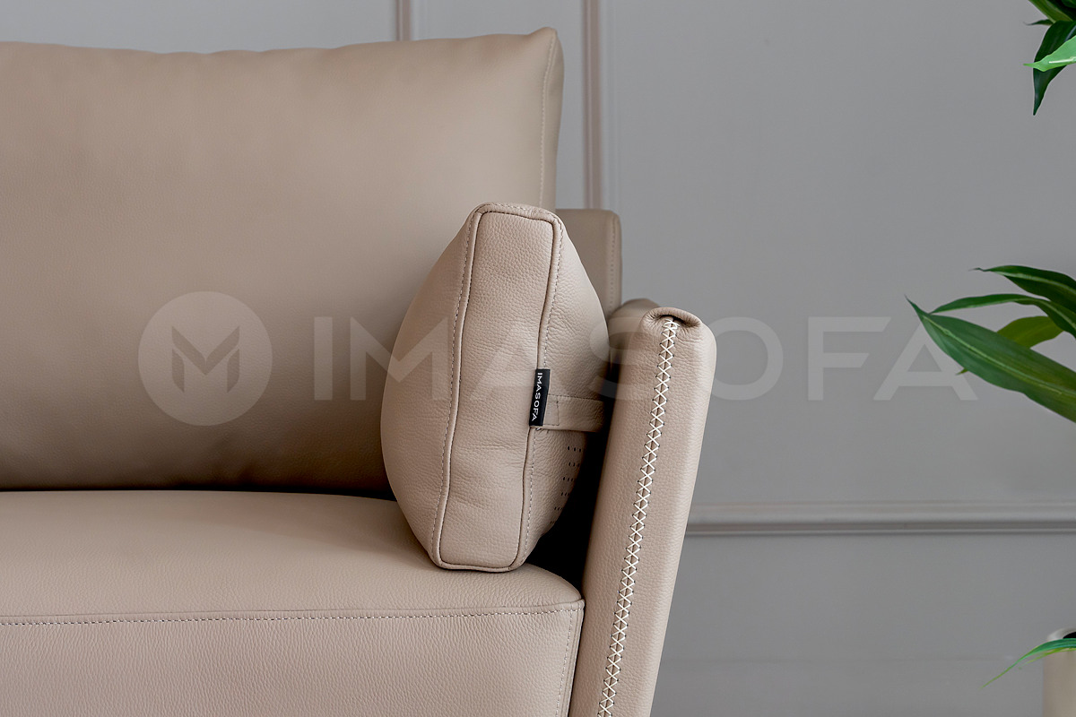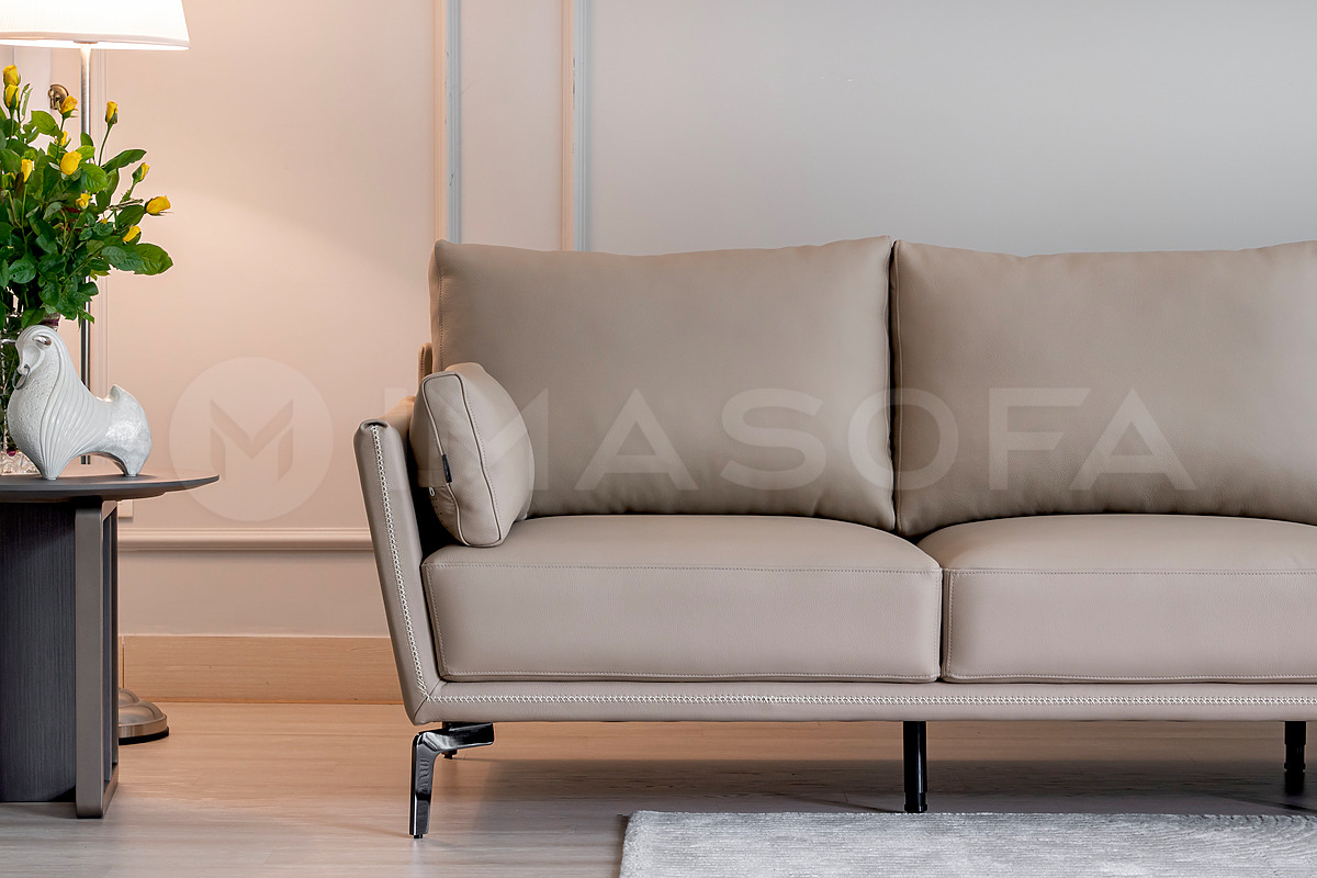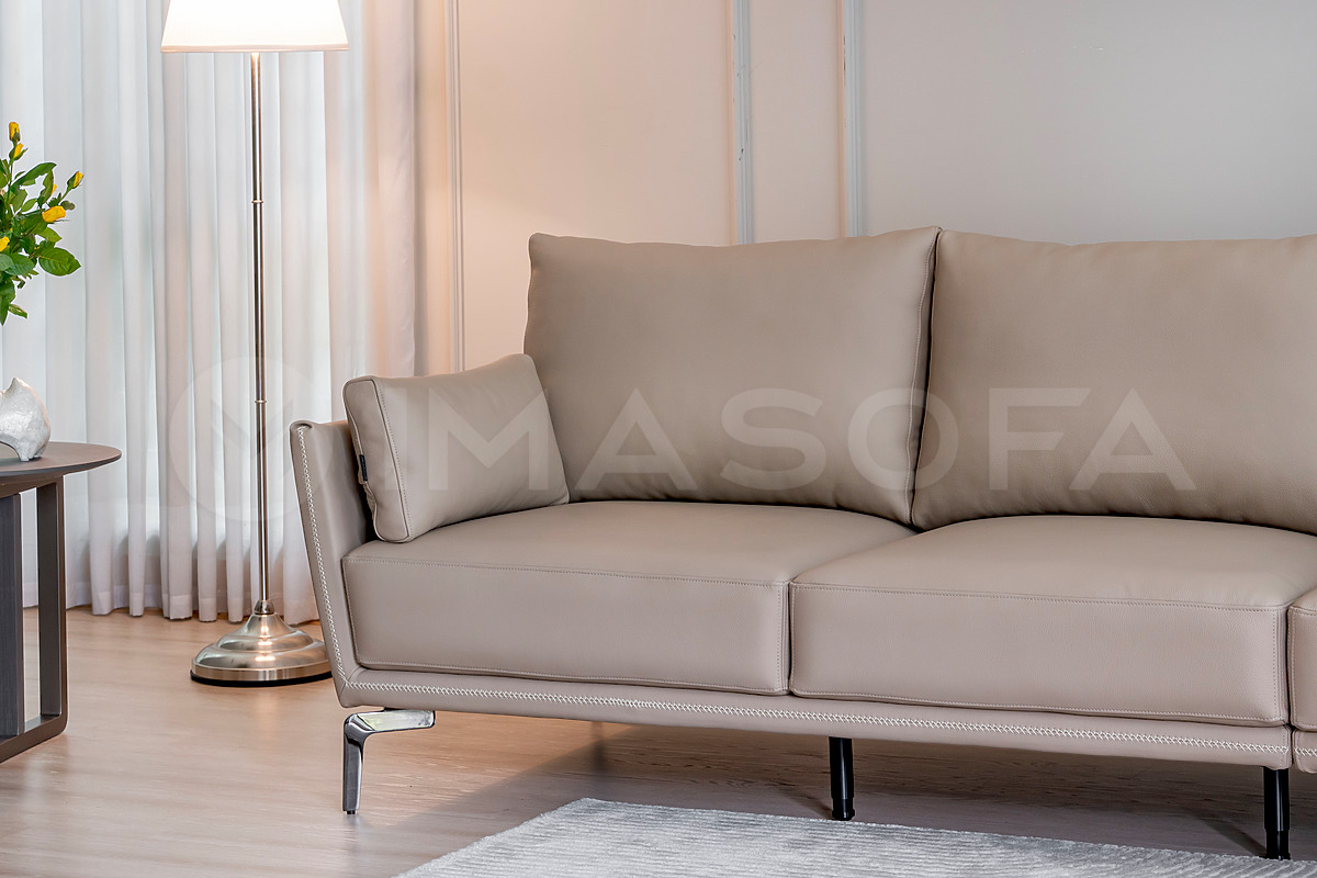 Sofa băng Napoli da bò tự nhiên màu kem sáng