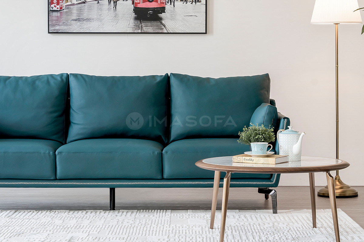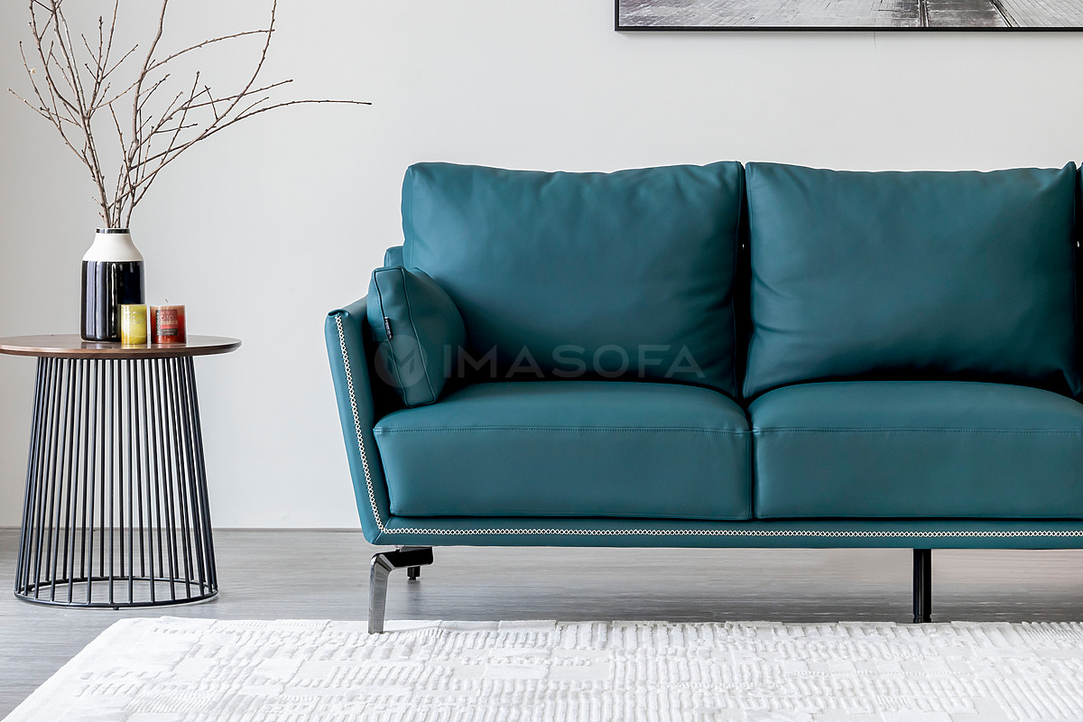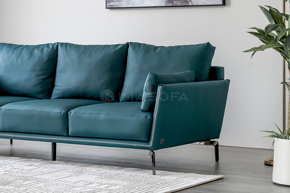 Sofa băng Napoli da bò tự nhiên màu xanh