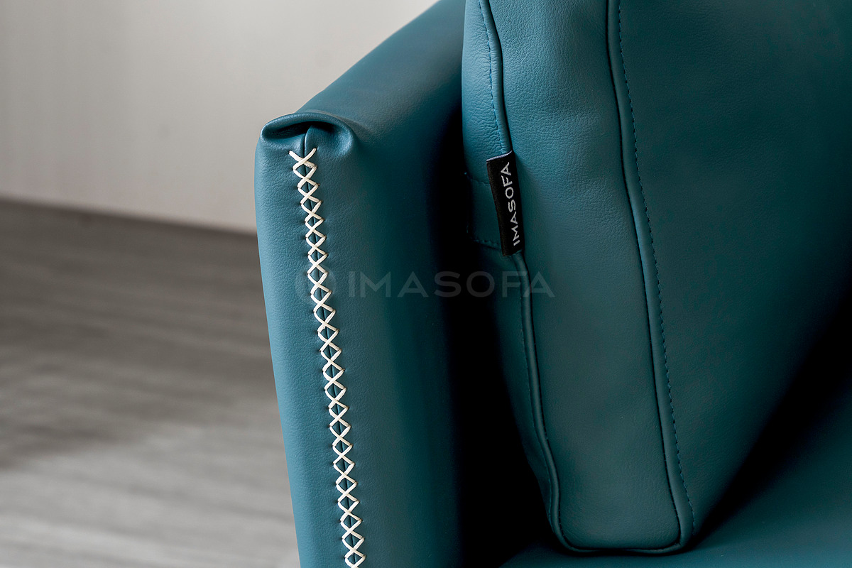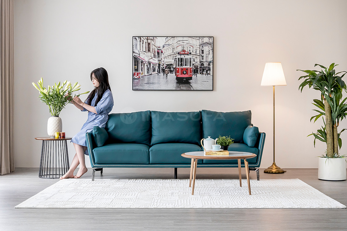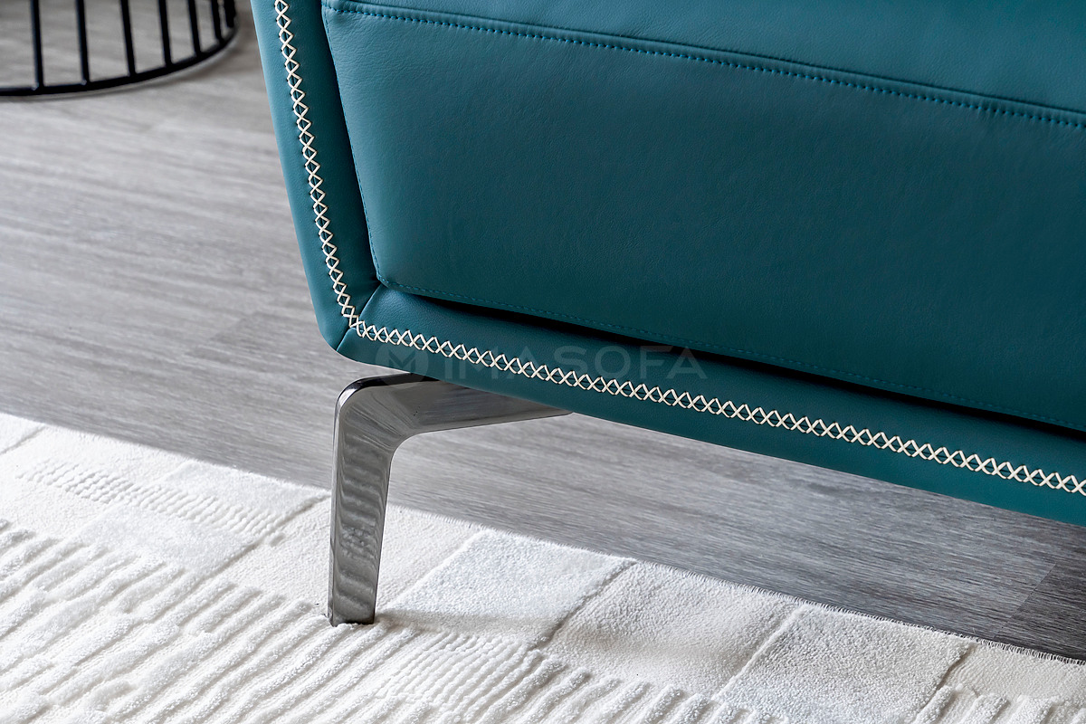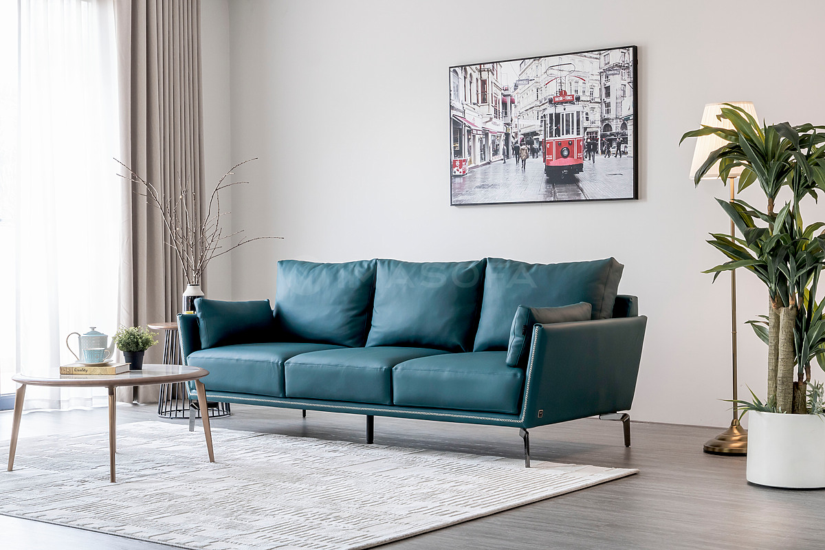 Sofa băng Napoli da bò tự nhiên màu xanh