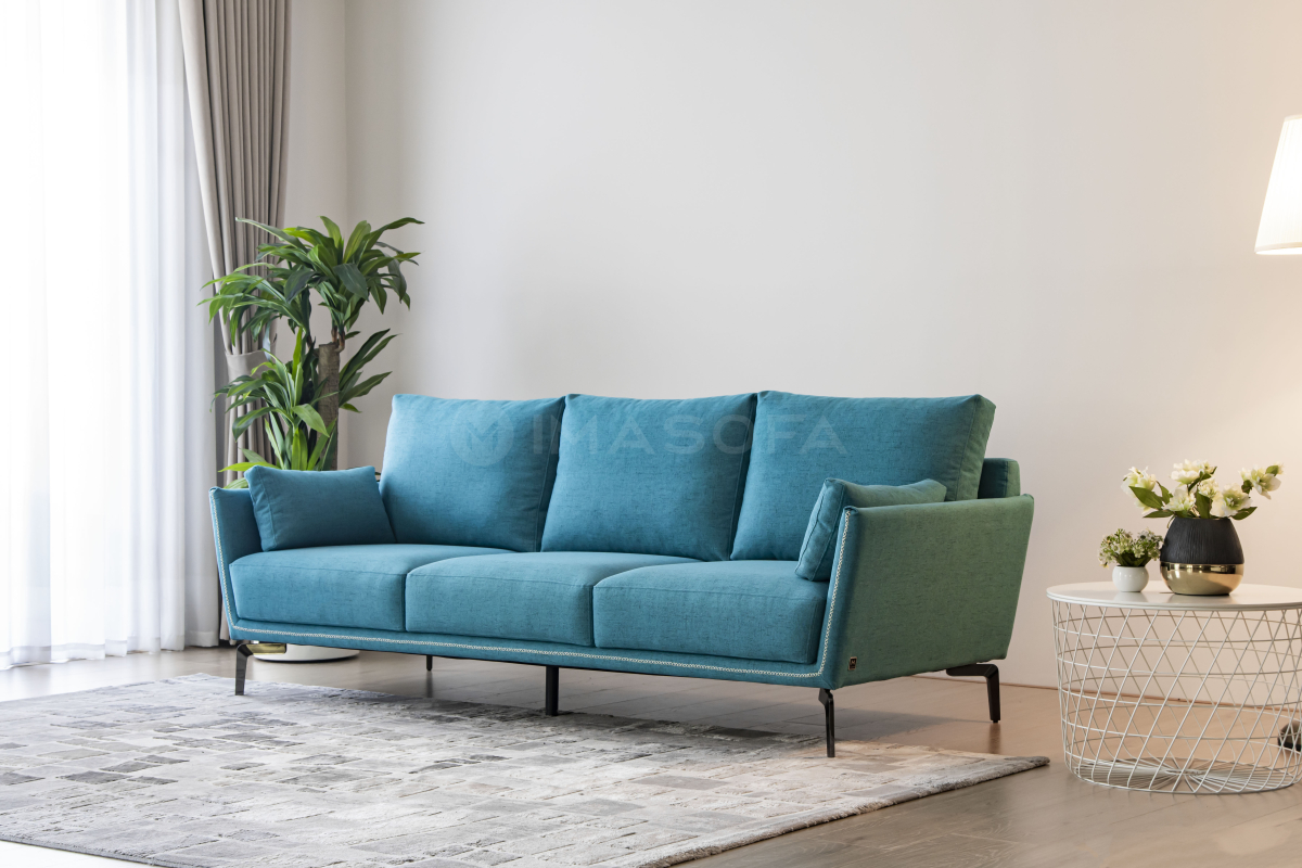 Sofa băng Napoli vải màu xanh dương