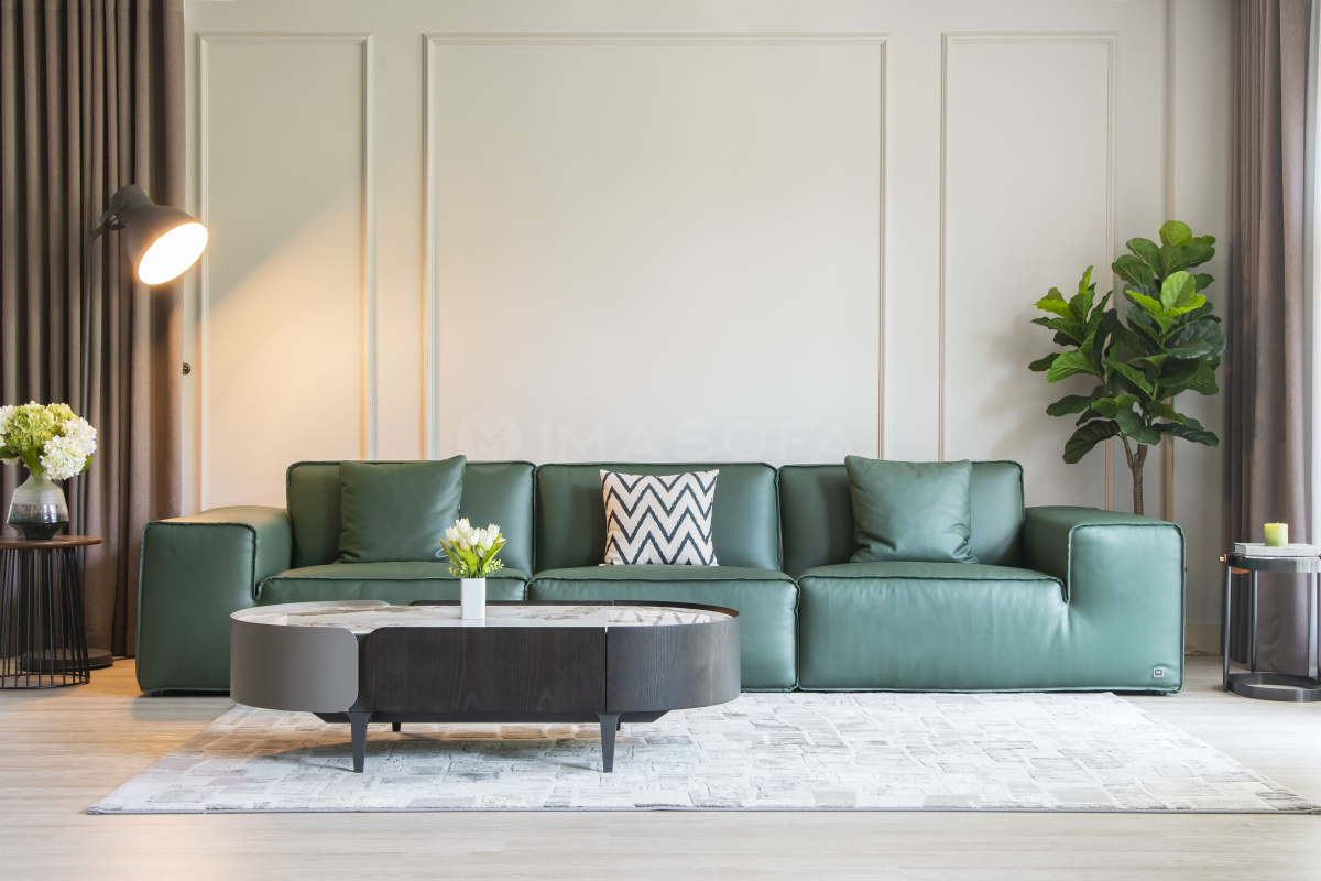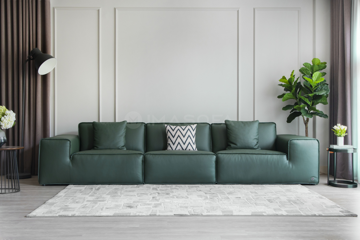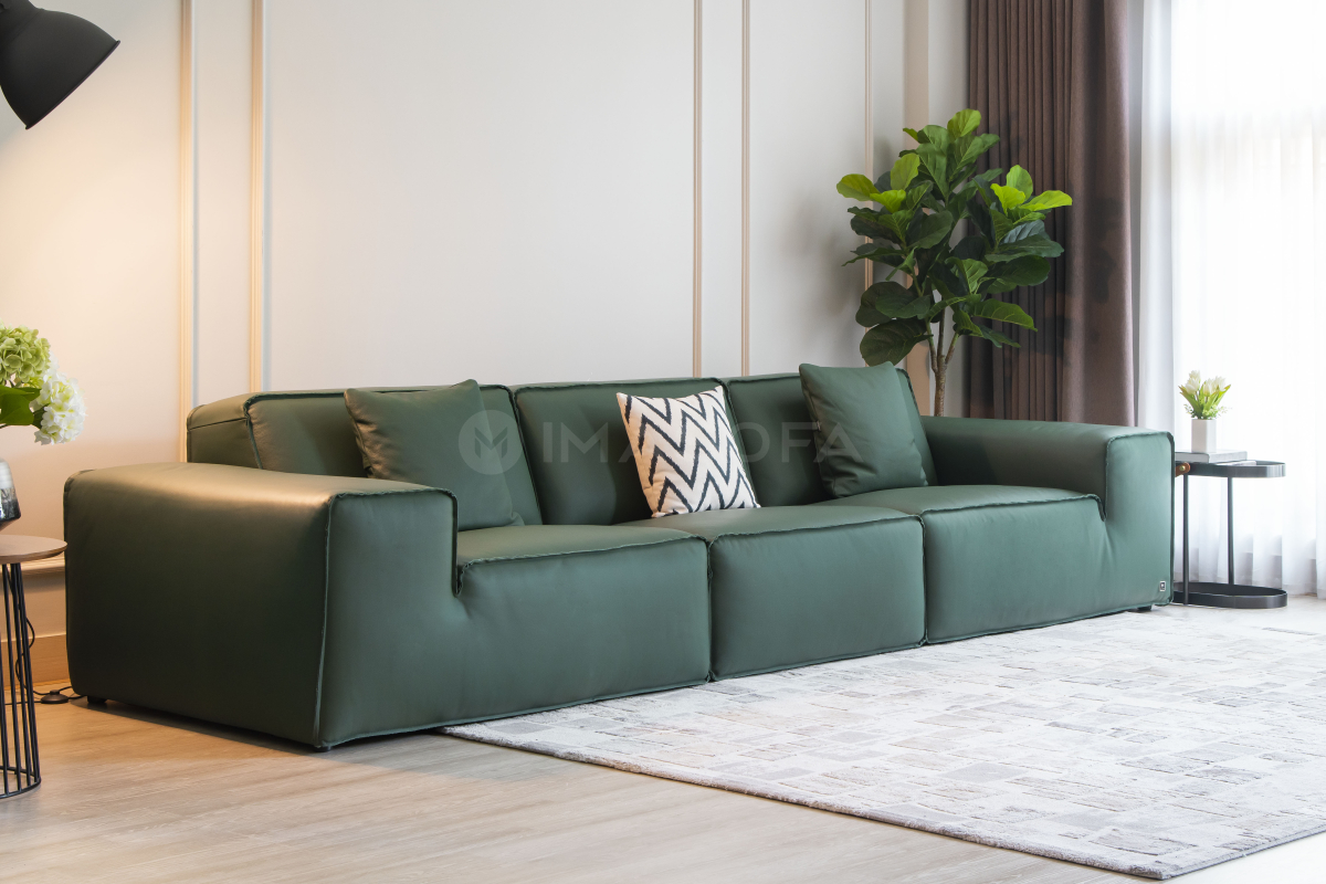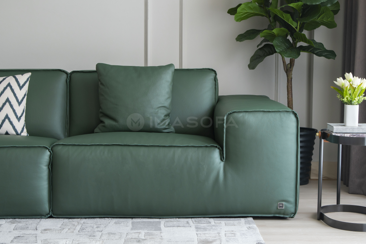 Sofa băng Rome da bò tự nhiên màu xanh lá