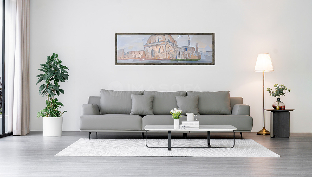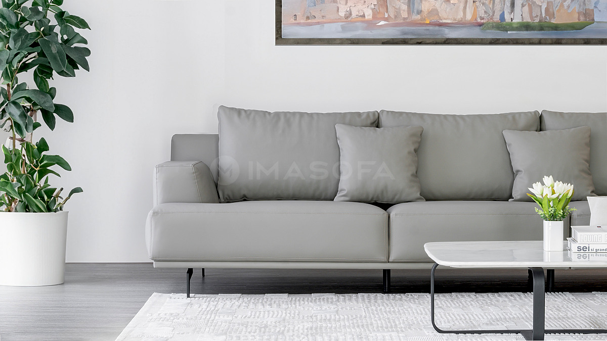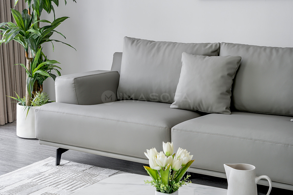 Sofa băng Trio da bò nhân tạo màu xám nhạt