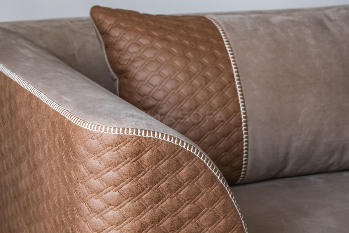 Đệm: Hệ đệm liền hết kết hợp với dạng tay cong ôm mềm tạo nên sự đồng nhất trong thiết kế.