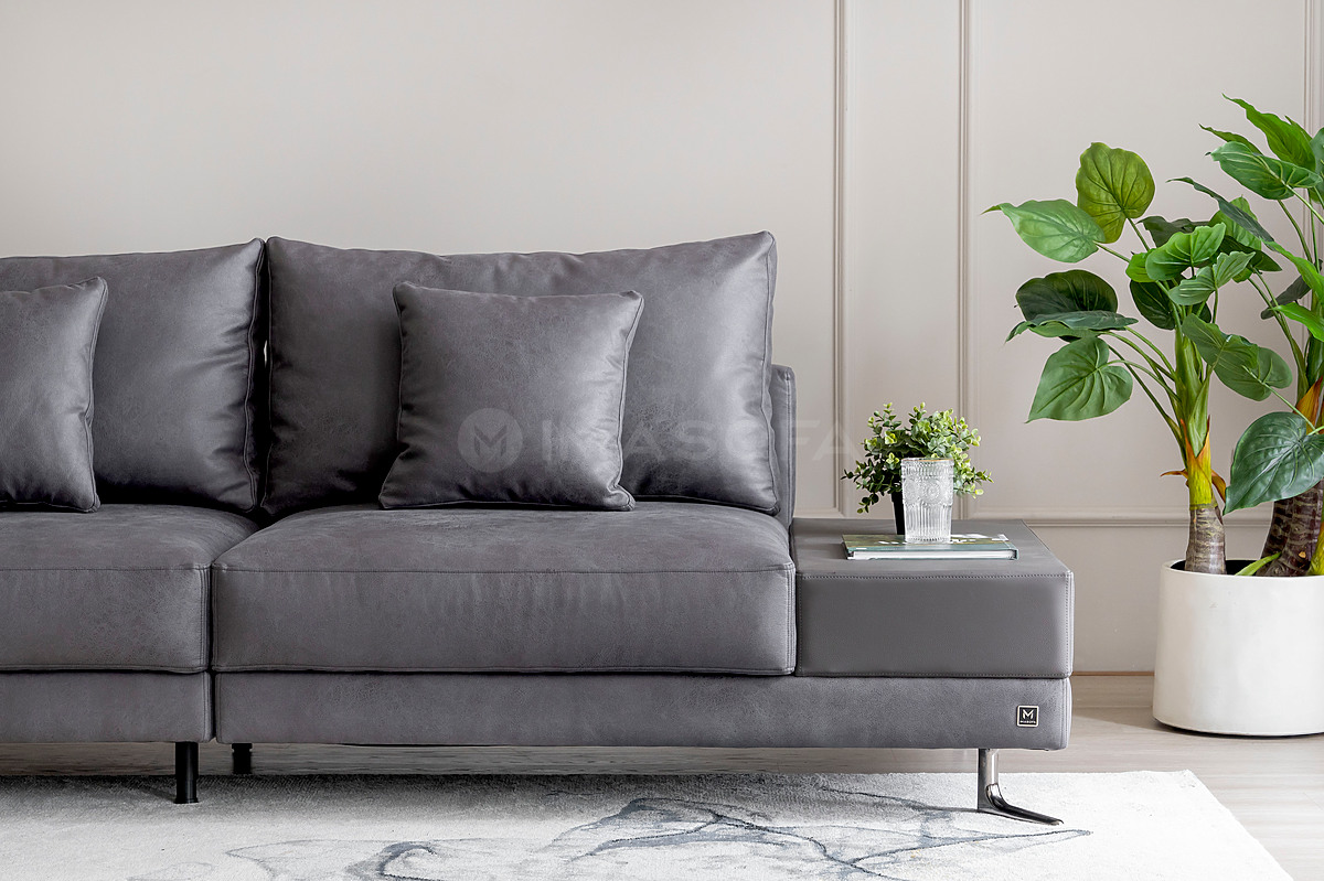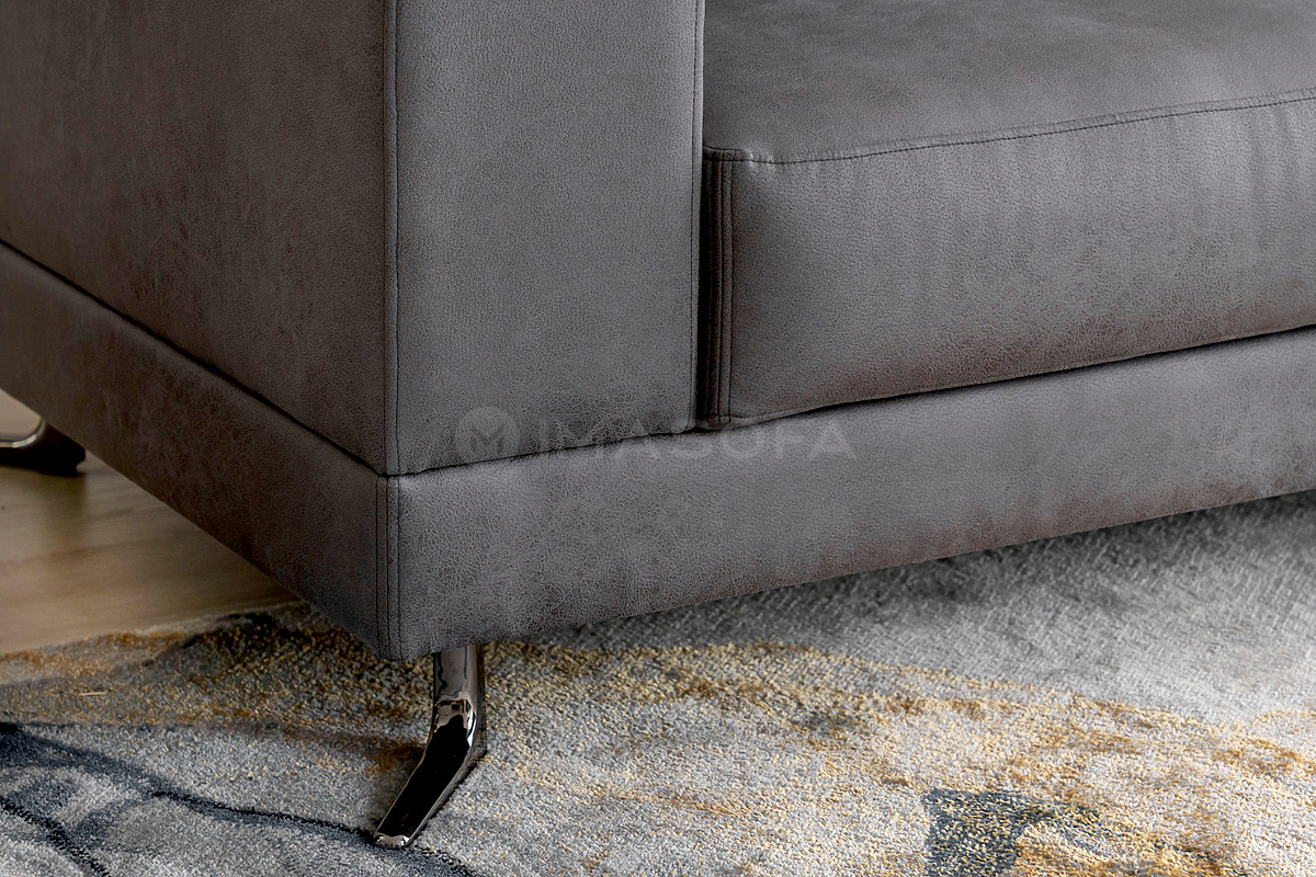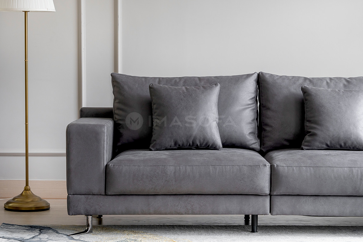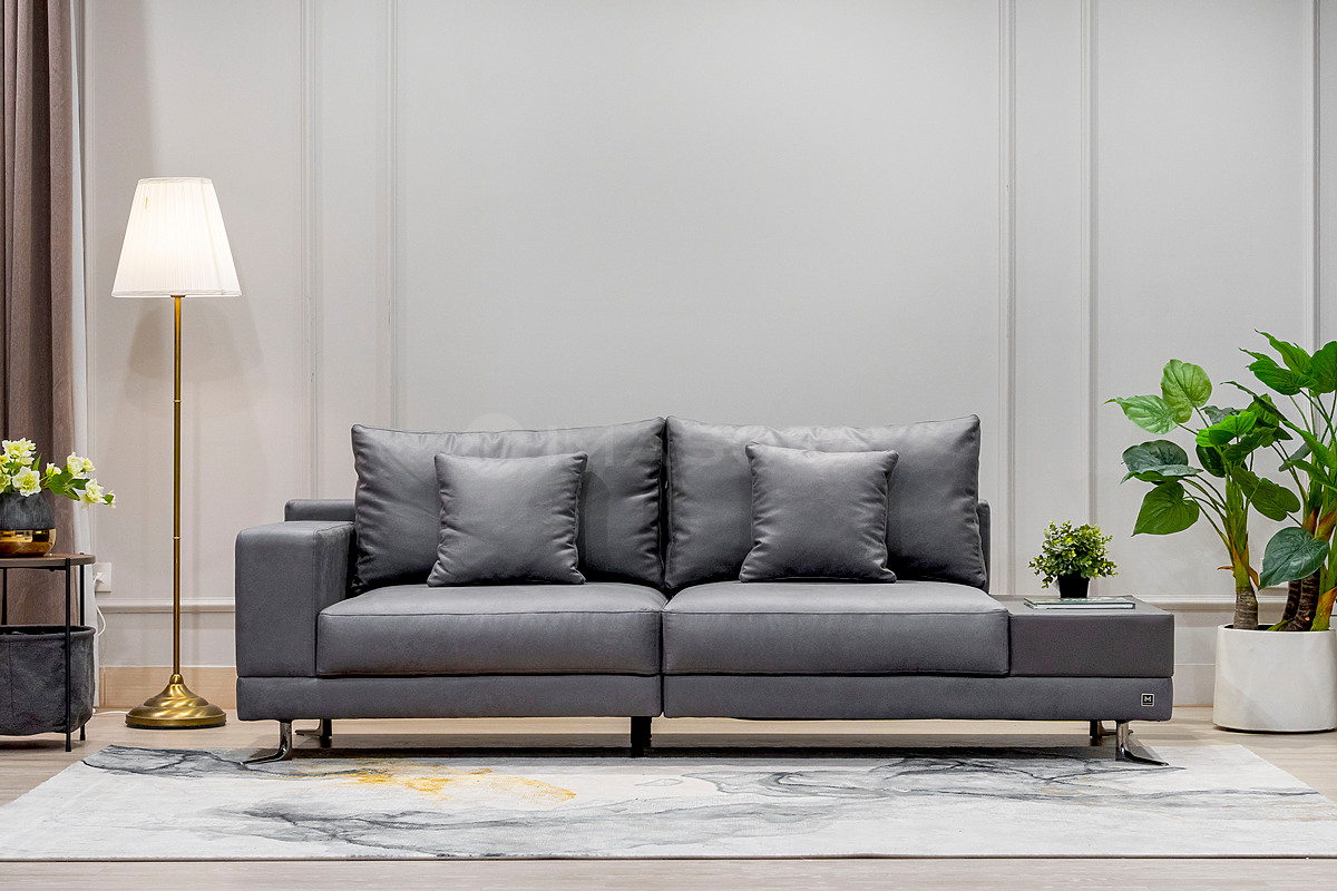 Sofa băng White da bò nhân tạo màu xám đậm
