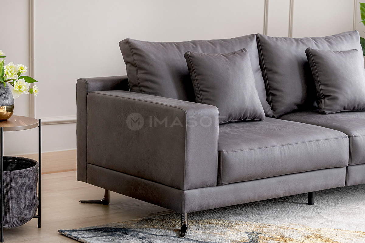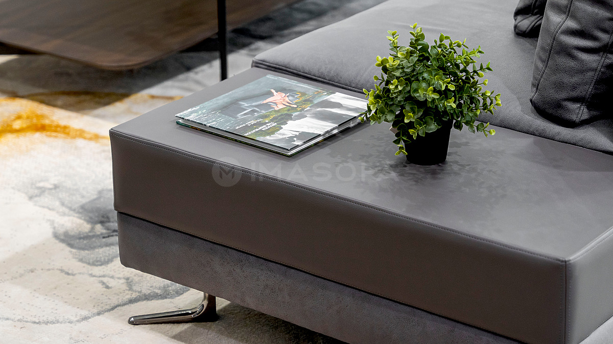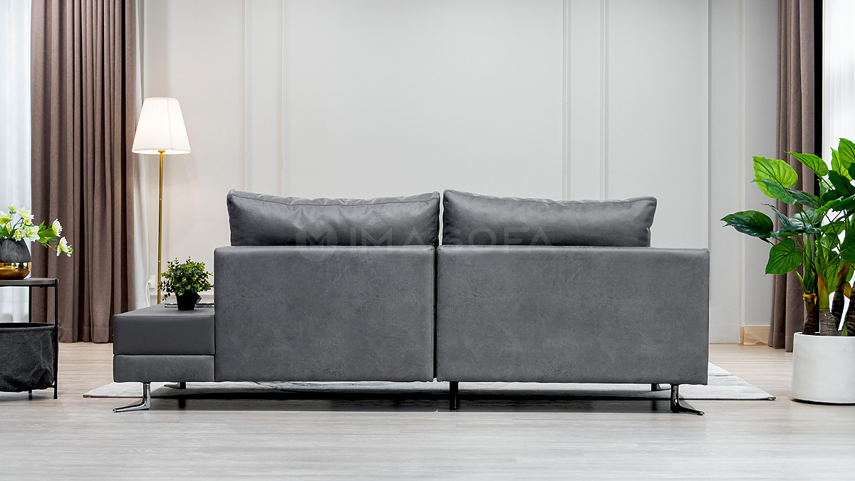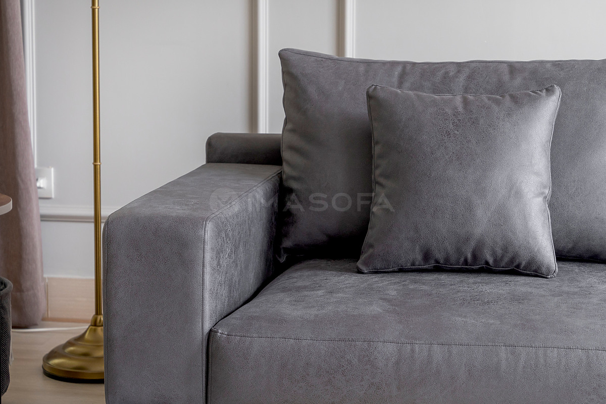Sofa băng White da bò nhân tạo màu xám đậm