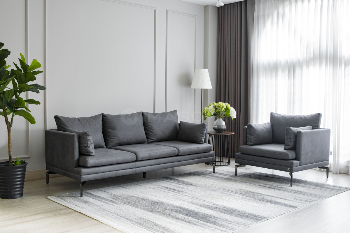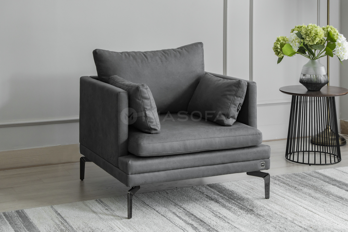 Sofa đơn Bella da bò nhân tạo màu xám đậm