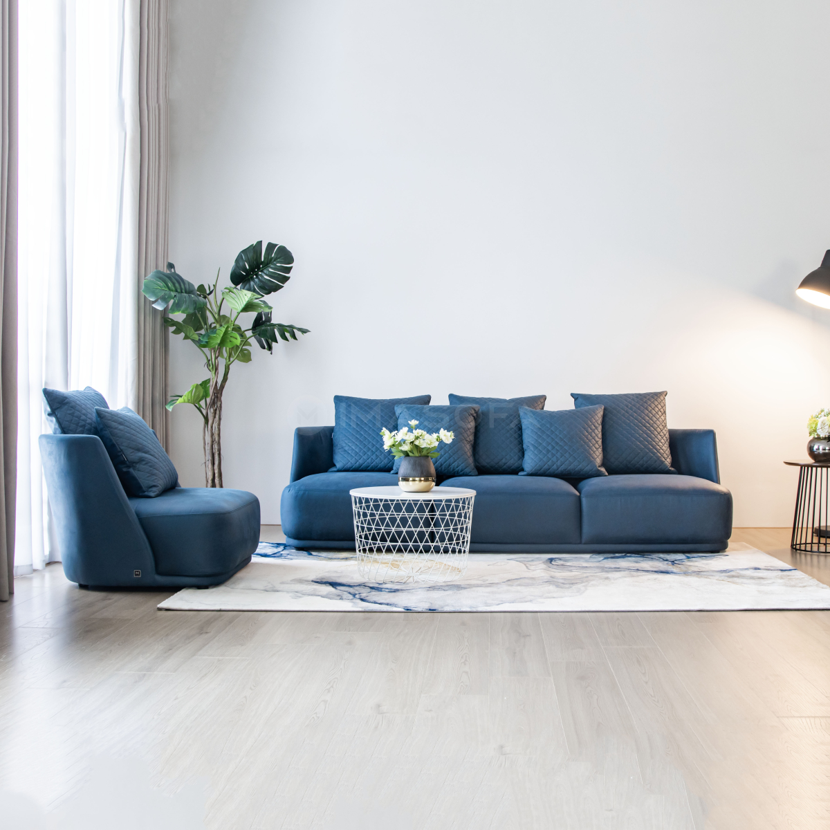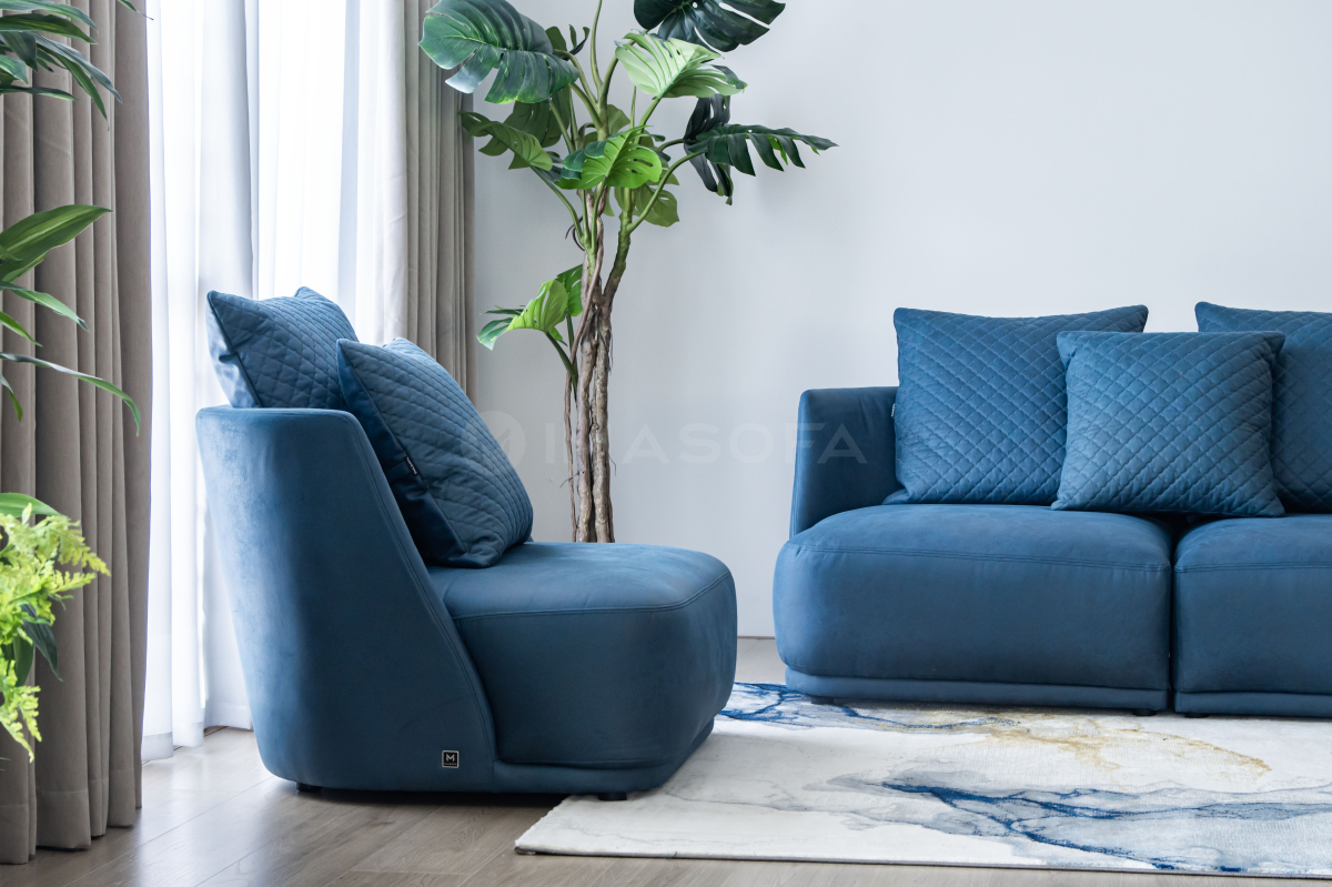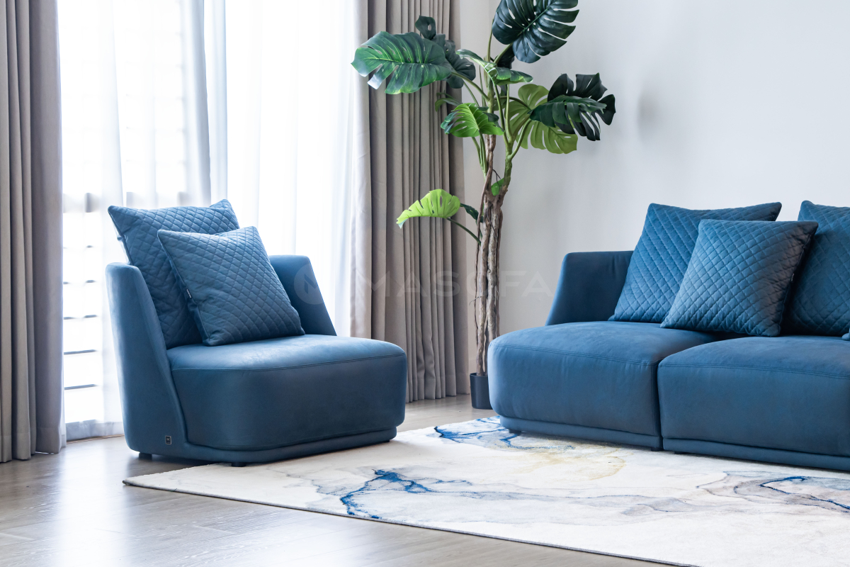 Sofa đơn Rimini da bò nhân tạo màu xanh dương