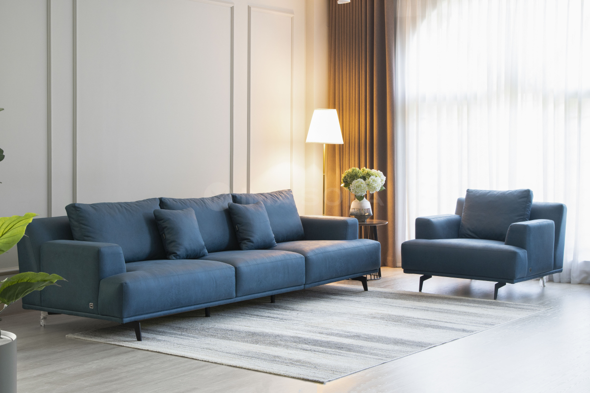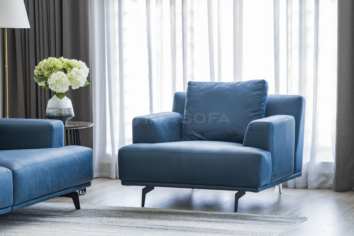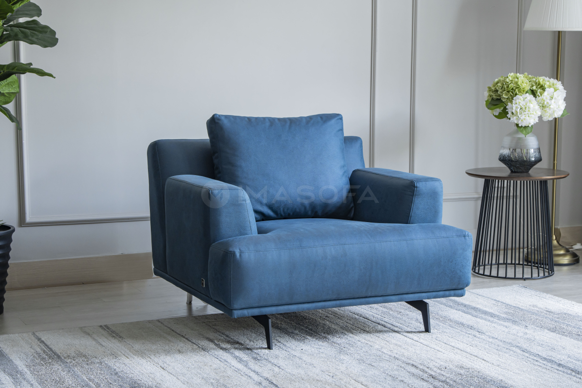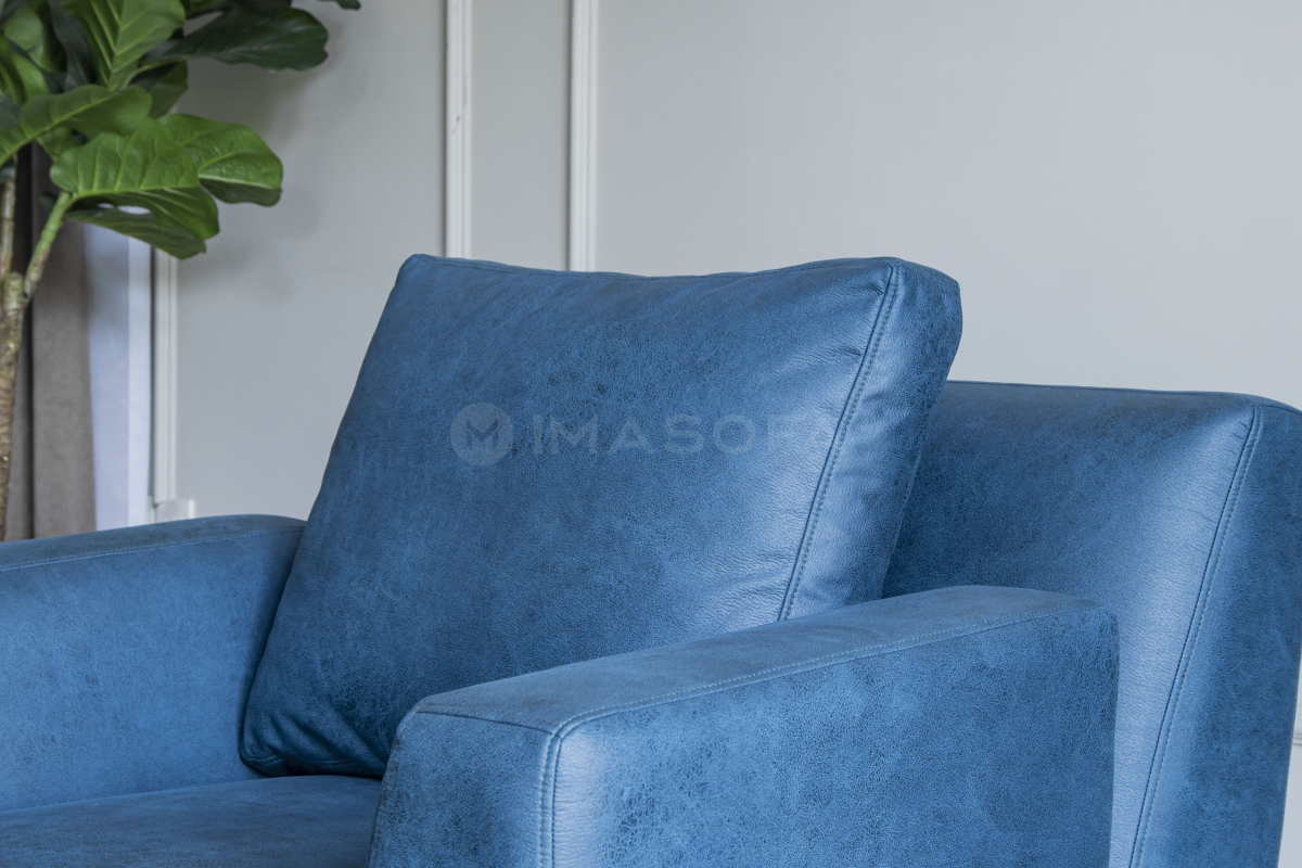 Sofa đơn Trio da bò nhân tạo màu xanh dương
