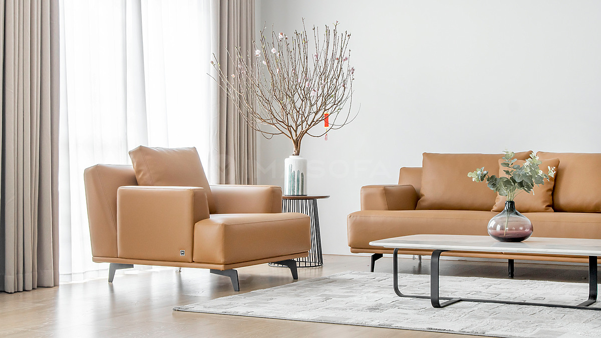 Sofa đơn Trio da bò nhân tạo màu da bò