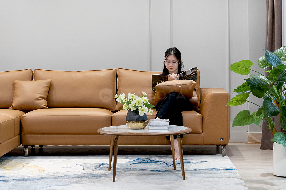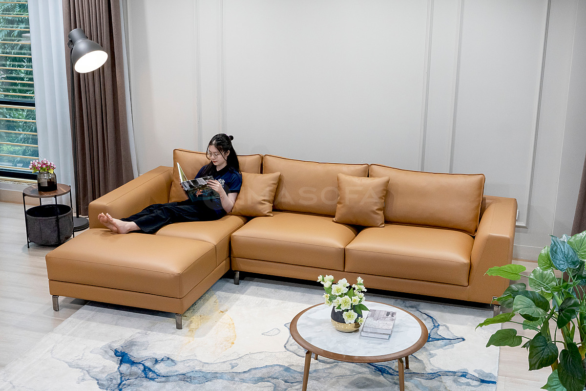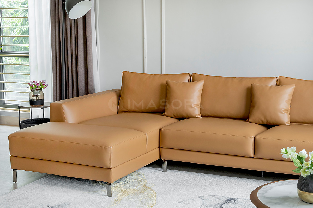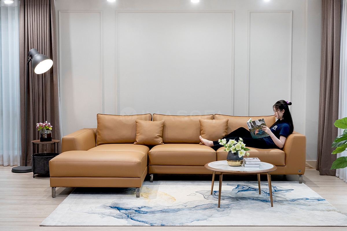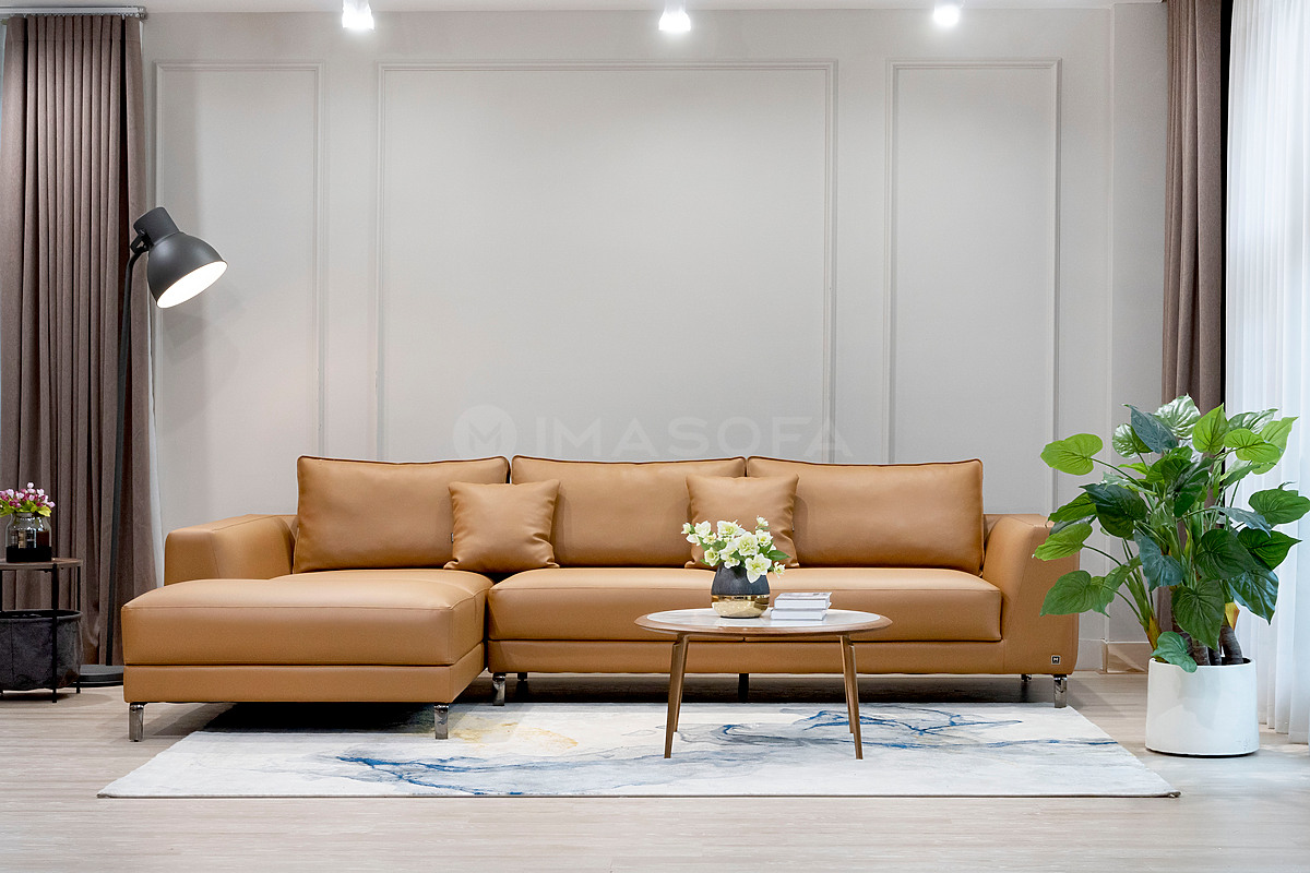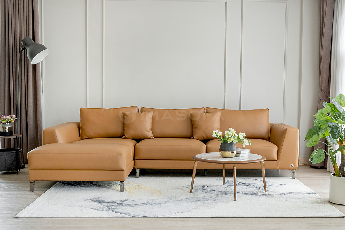 Sofa góc L Royal da bò nhân tạo màu da bò