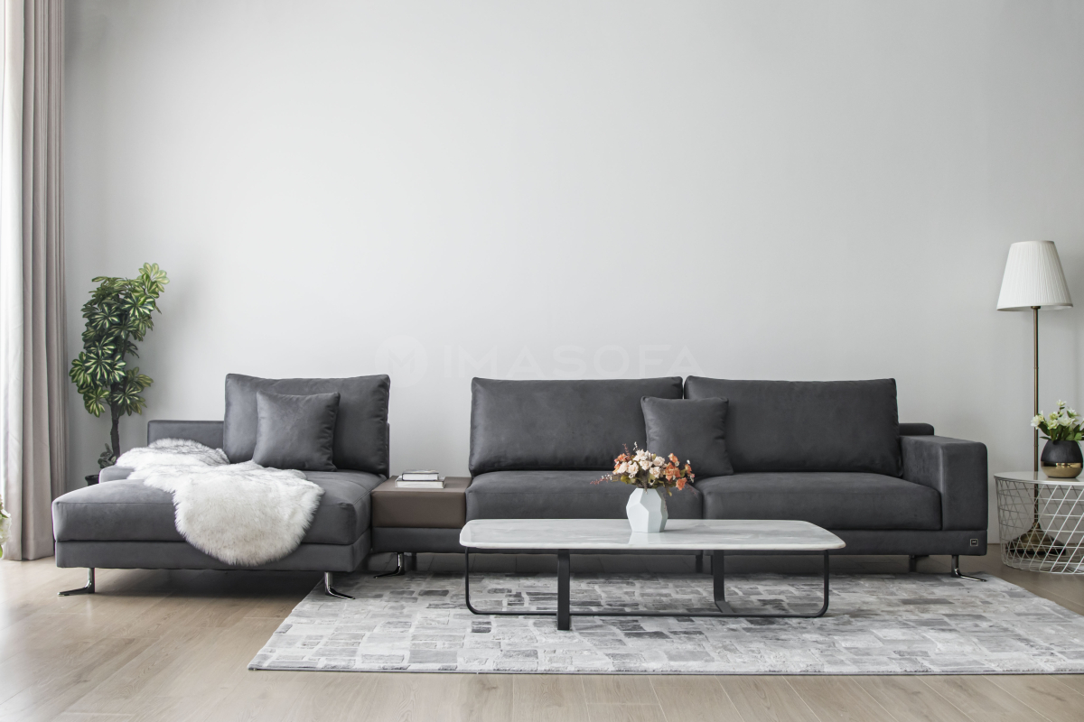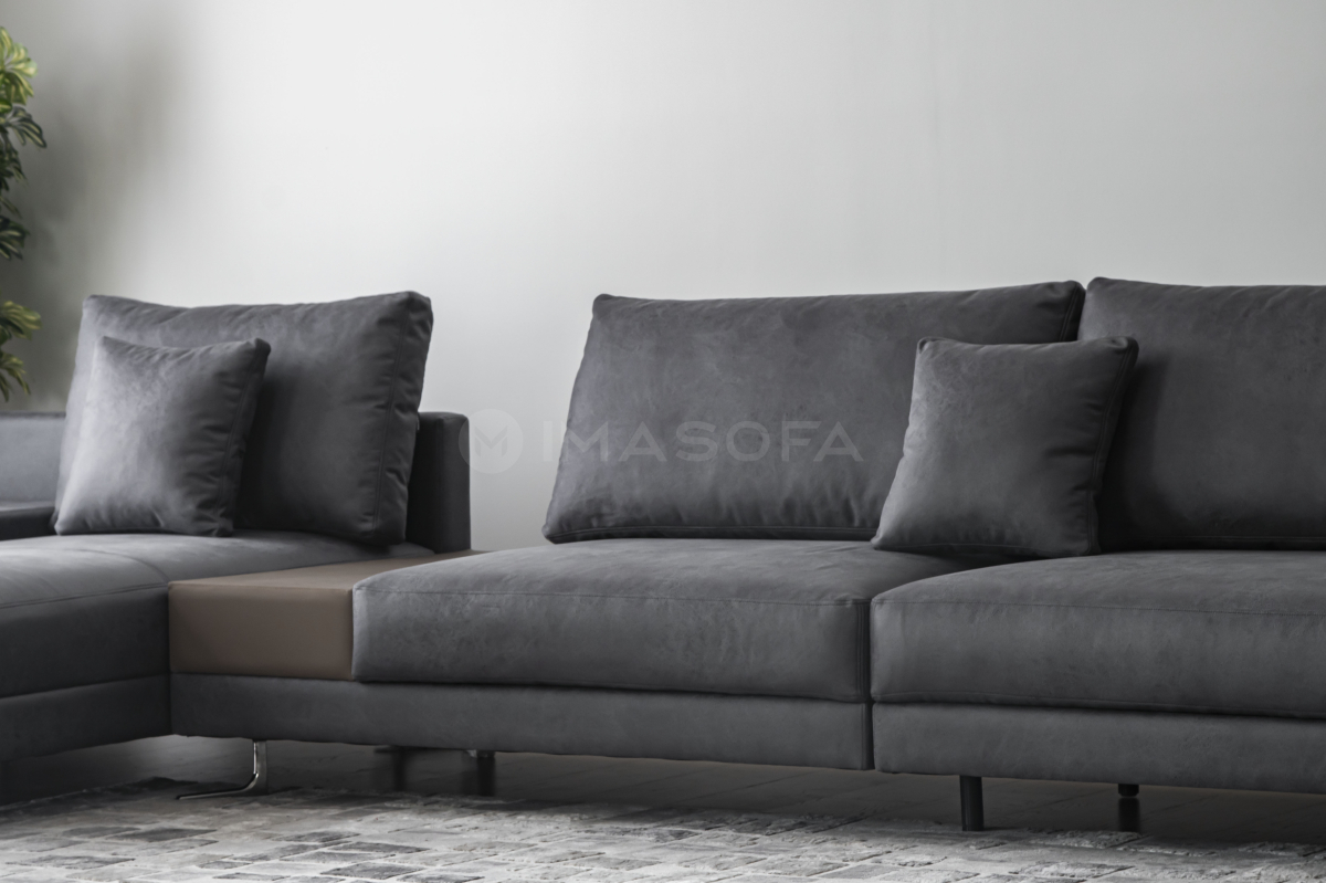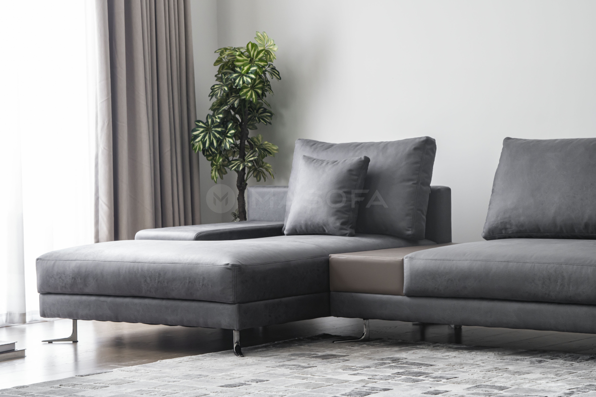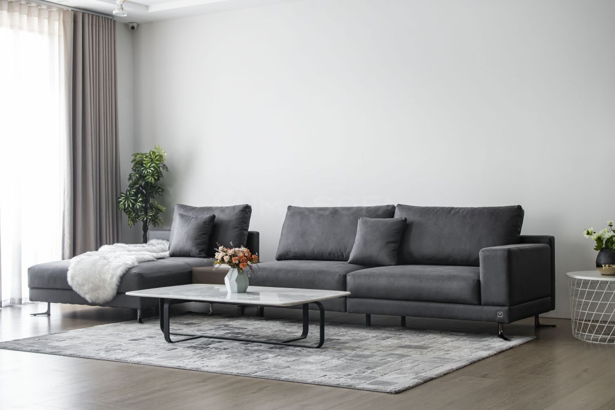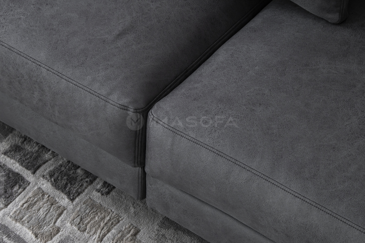 Sofa góc L White da bò nhân tạo màu xám đậm