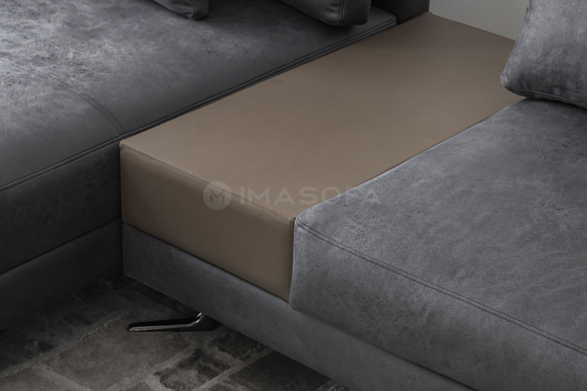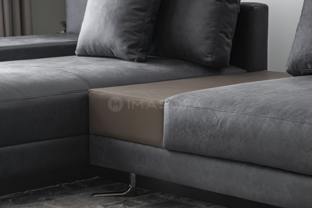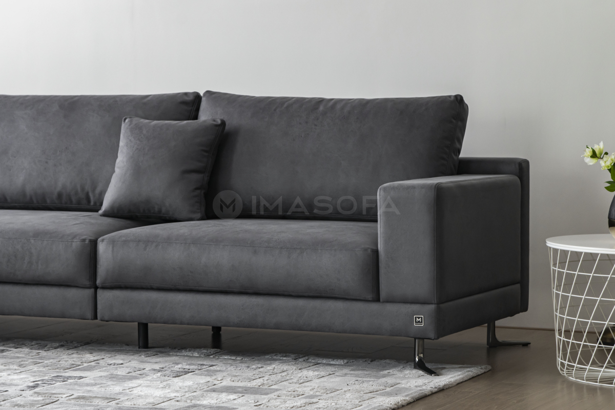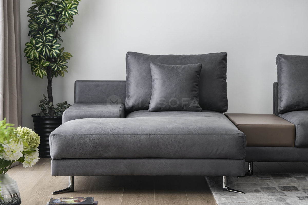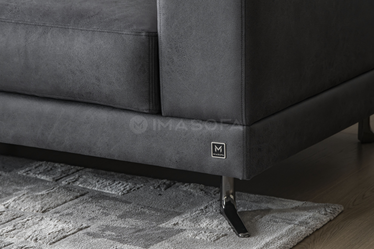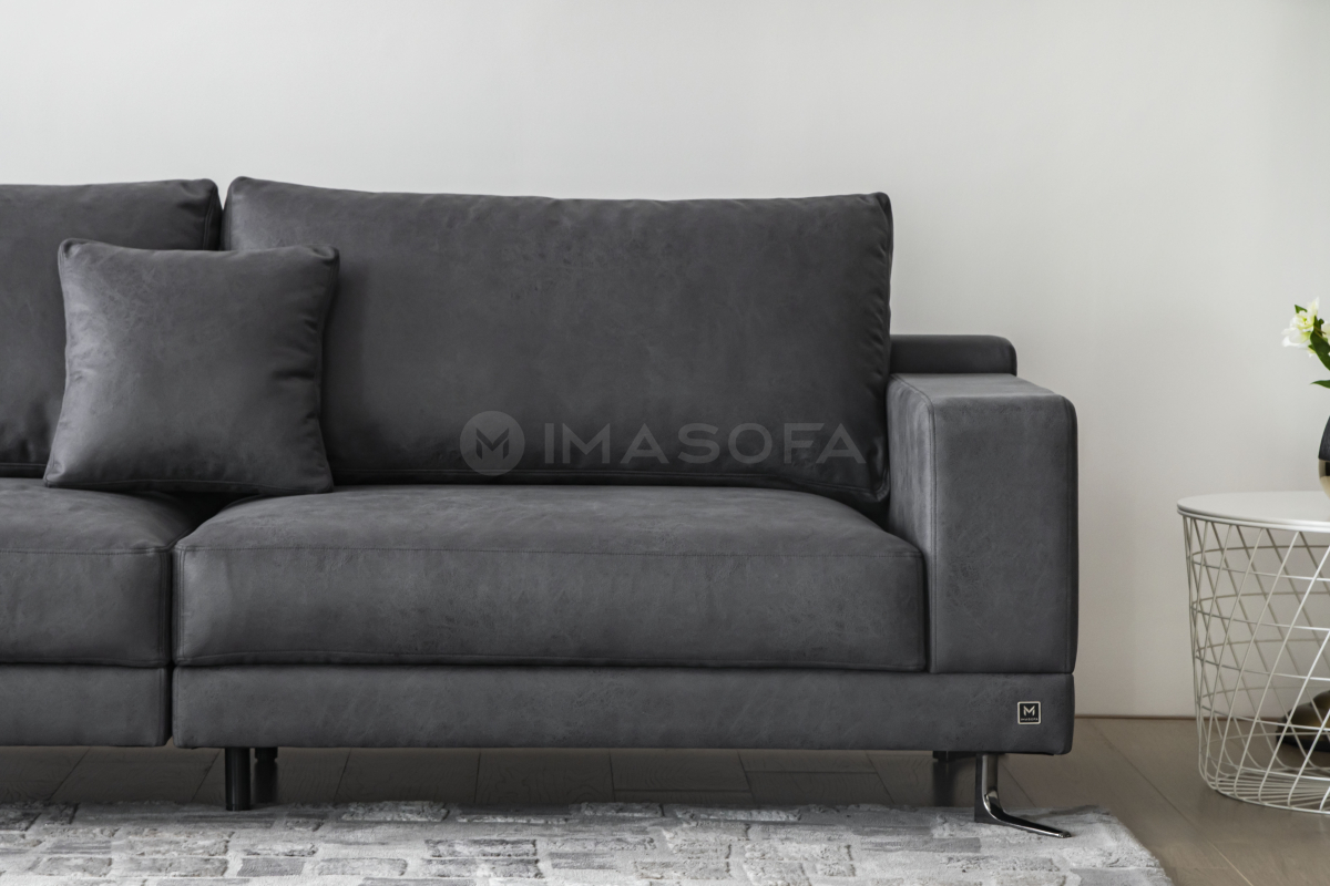 Sofa góc L White da bò nhân tạo màu xám đậm