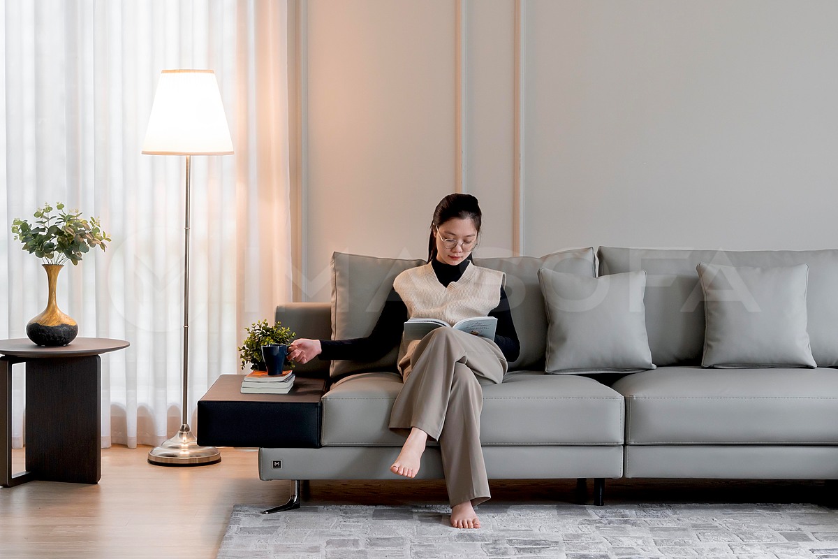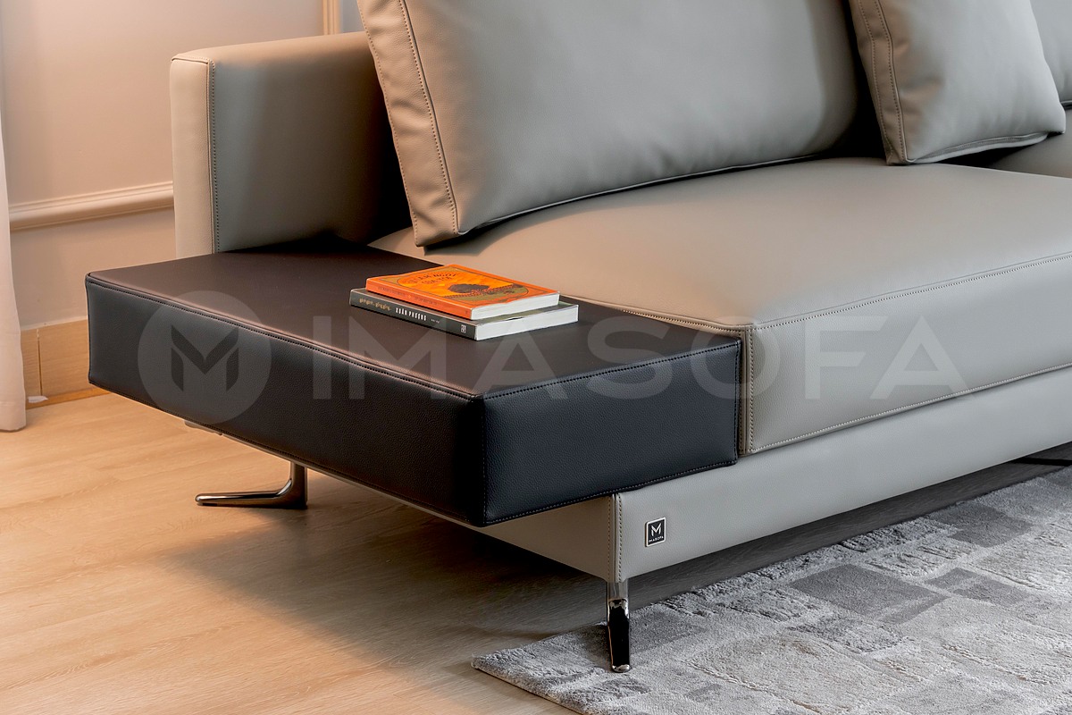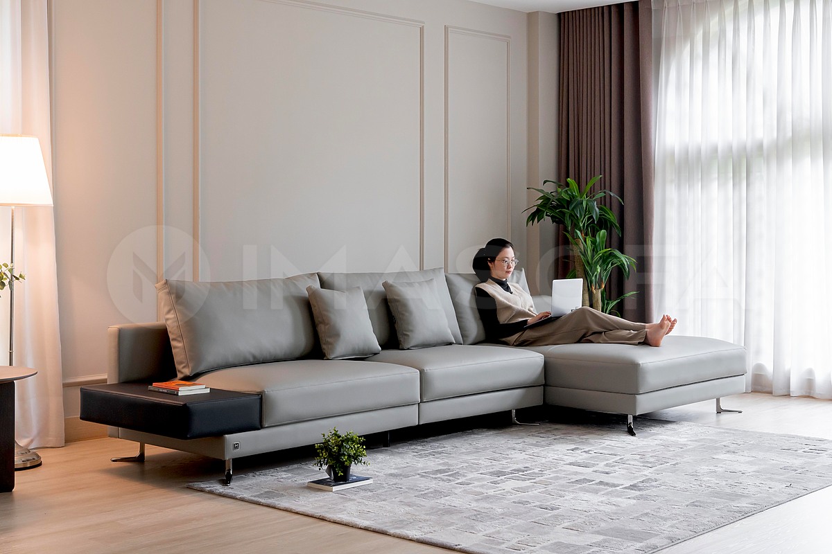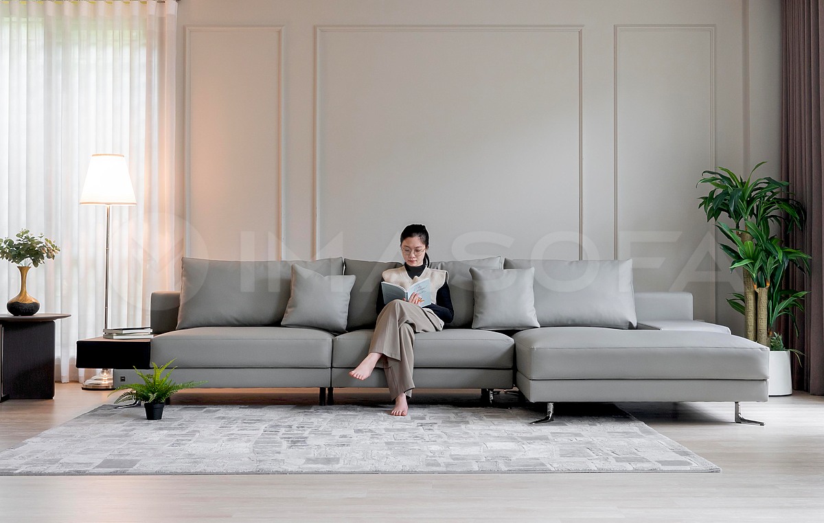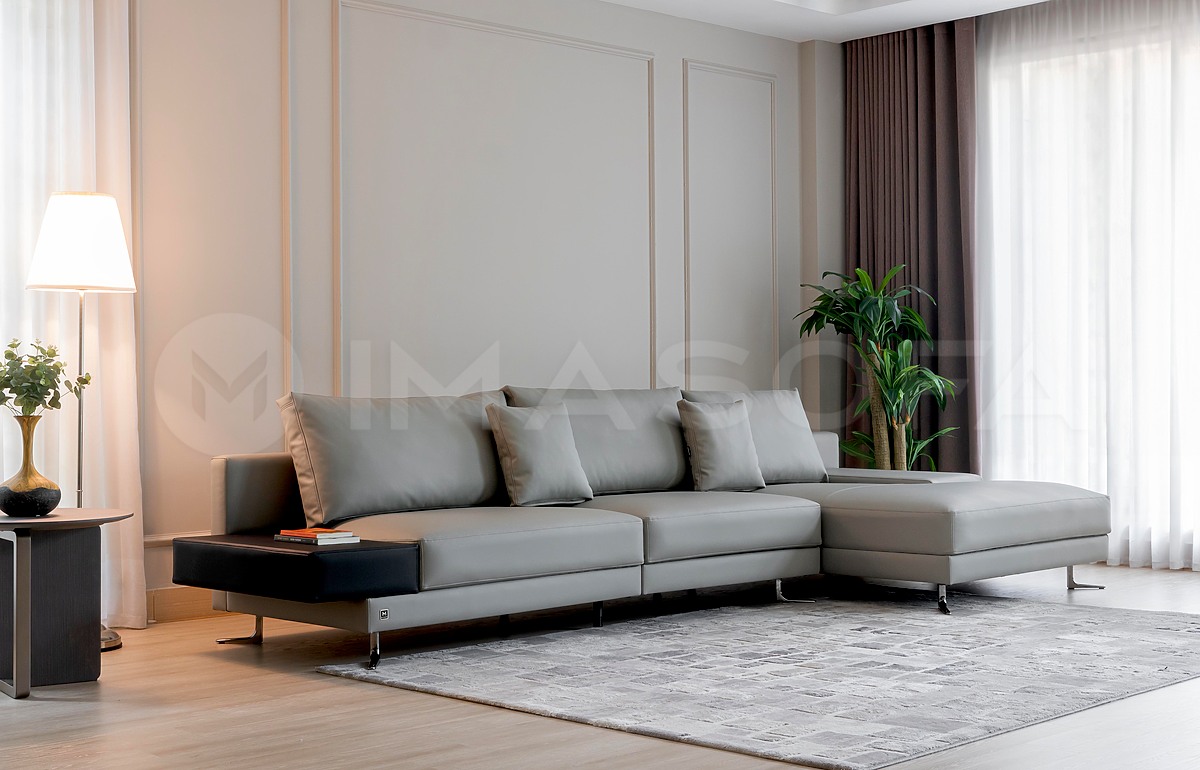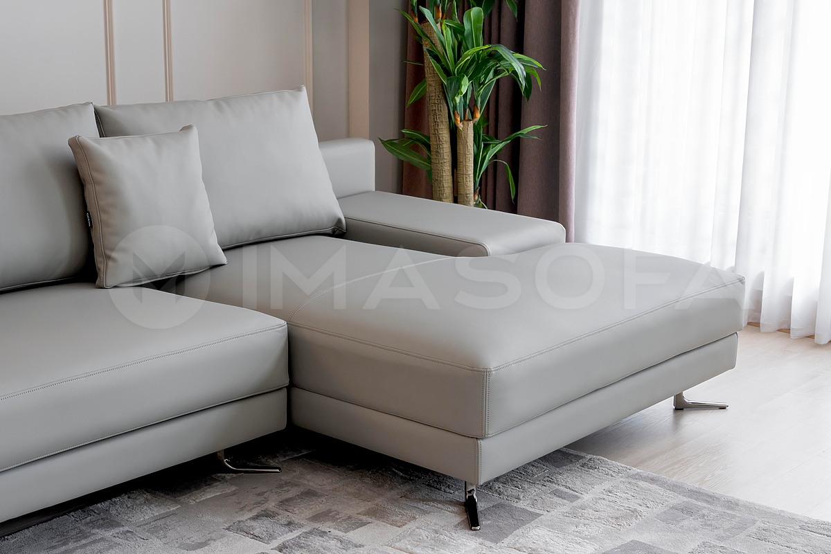 Sofa góc L White da bò nhân tạo màu xám nhạt